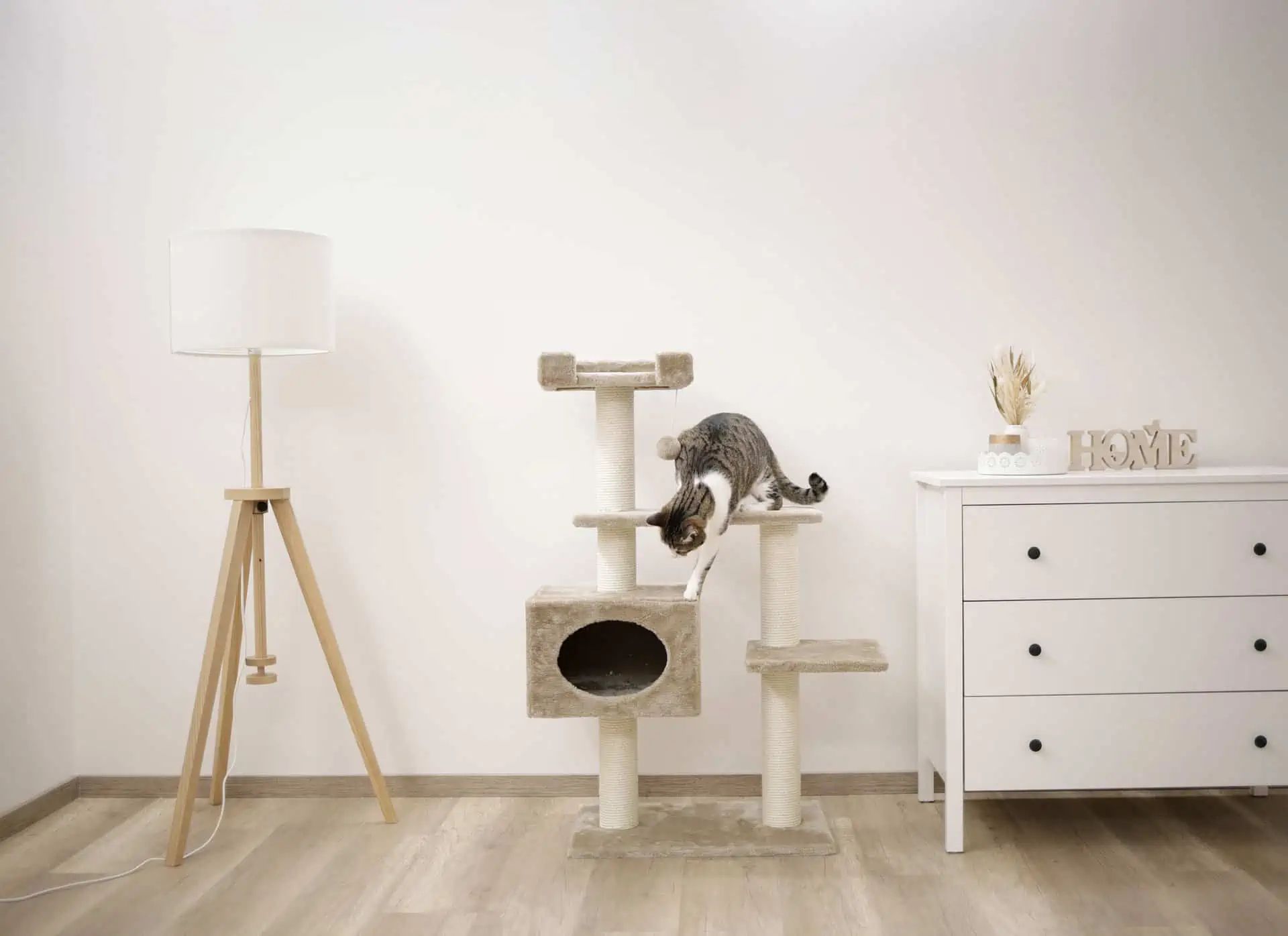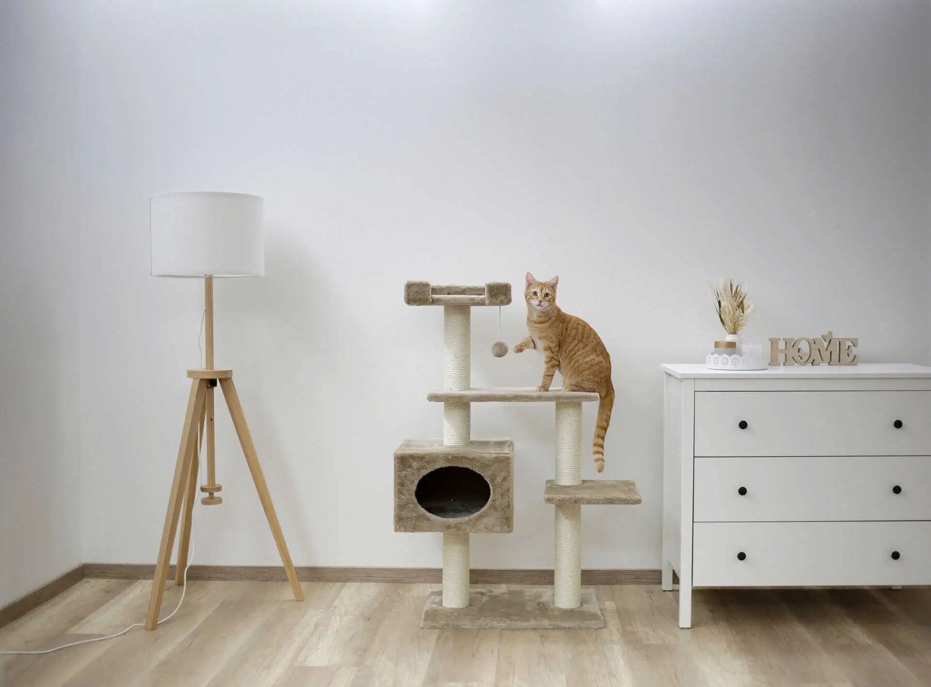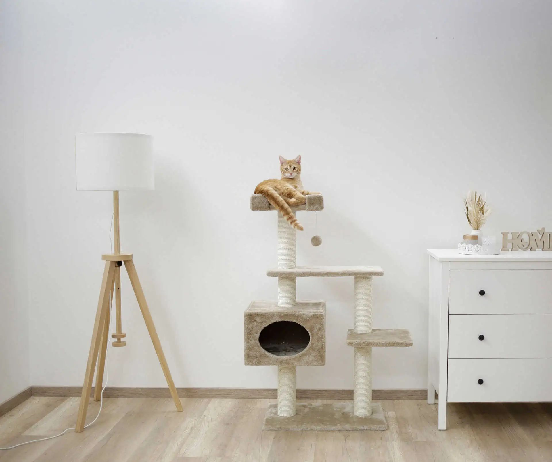 Le Arbre à gratter Emmy beige 58x38x121 cm est une solution compacte qui offre une multitude de fonctionnalités pour amuser et satisfaire les instincts naturels de votre chat. Il est parfait pour les petits à moyens félins qui aiment jouer, grimper et gratter.