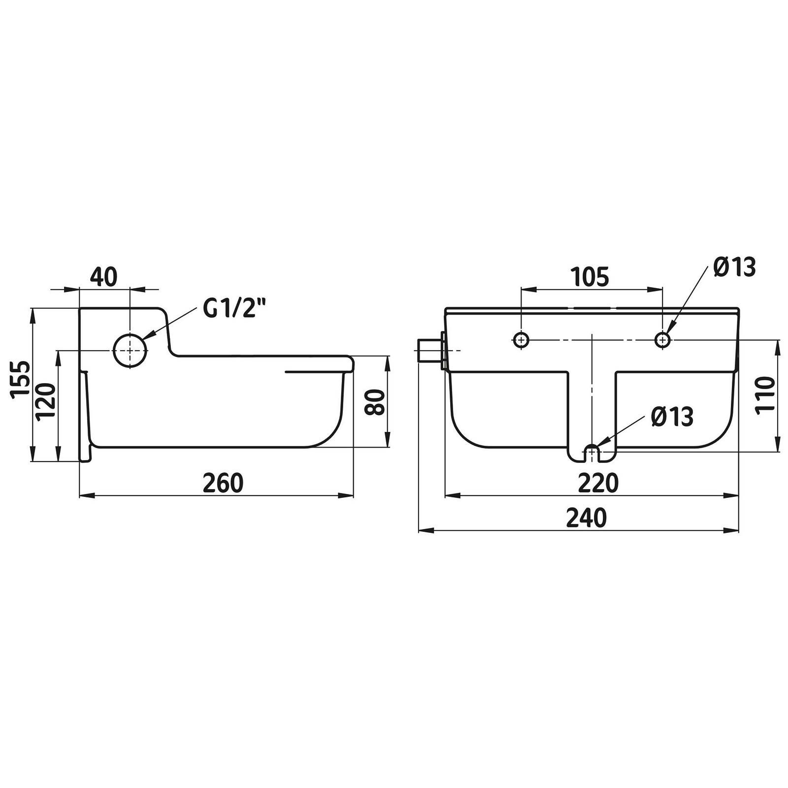 - raccord G1/2" sur le robinet à flotteur basse pression (22182), possible à gauche ou à droite
