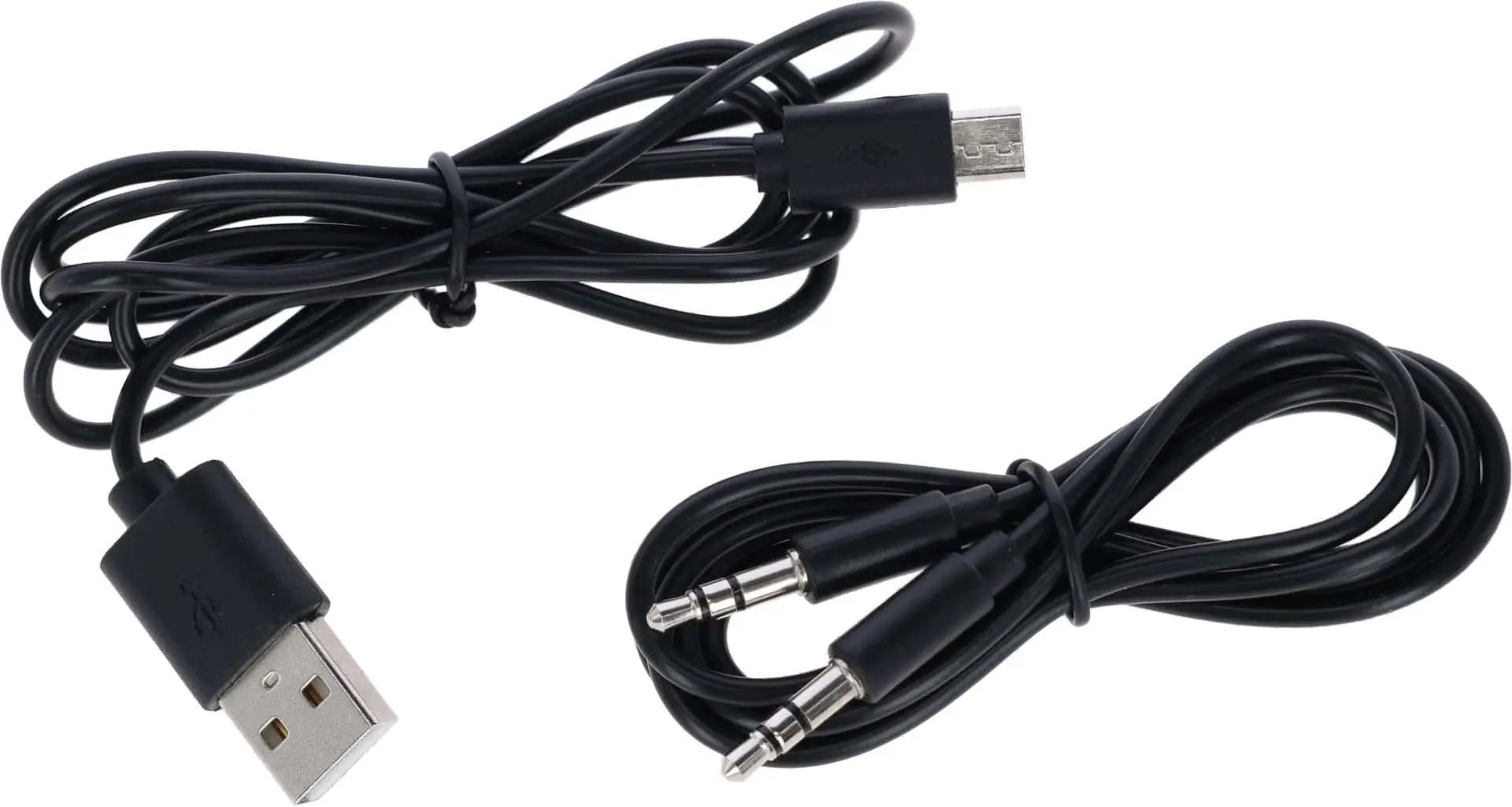 - Fourni avec un câble de chargement micro-USB et un câble jack (AUX)
