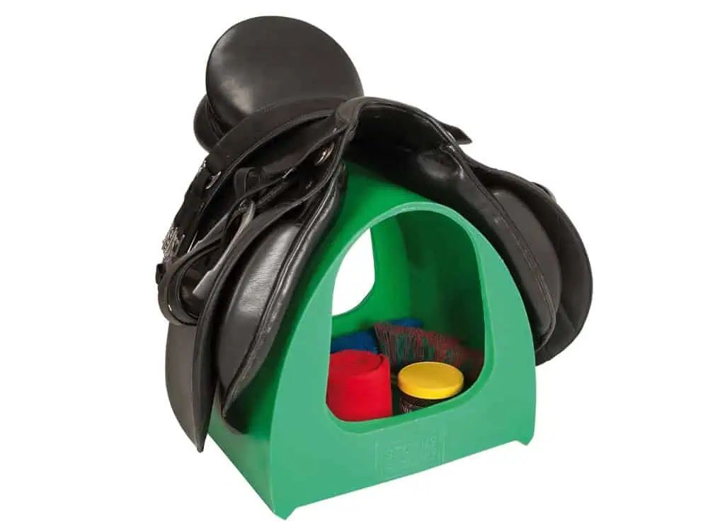 Fabriqué en matériau robuste et de couleur verte, le Saddle-Pac offre non seulement fonctionnalité mais également une esthétique attrayante. Grâce à sa construction robuste, le Saddle-Pac garantit que votre selle soit stockée en toute sécurité, que ce soit à la maison ou en déplacement. Les dimensions de 39 cm de longueur, 44 cm de largeur et 44 cm de hauteur le rendent très pratique.