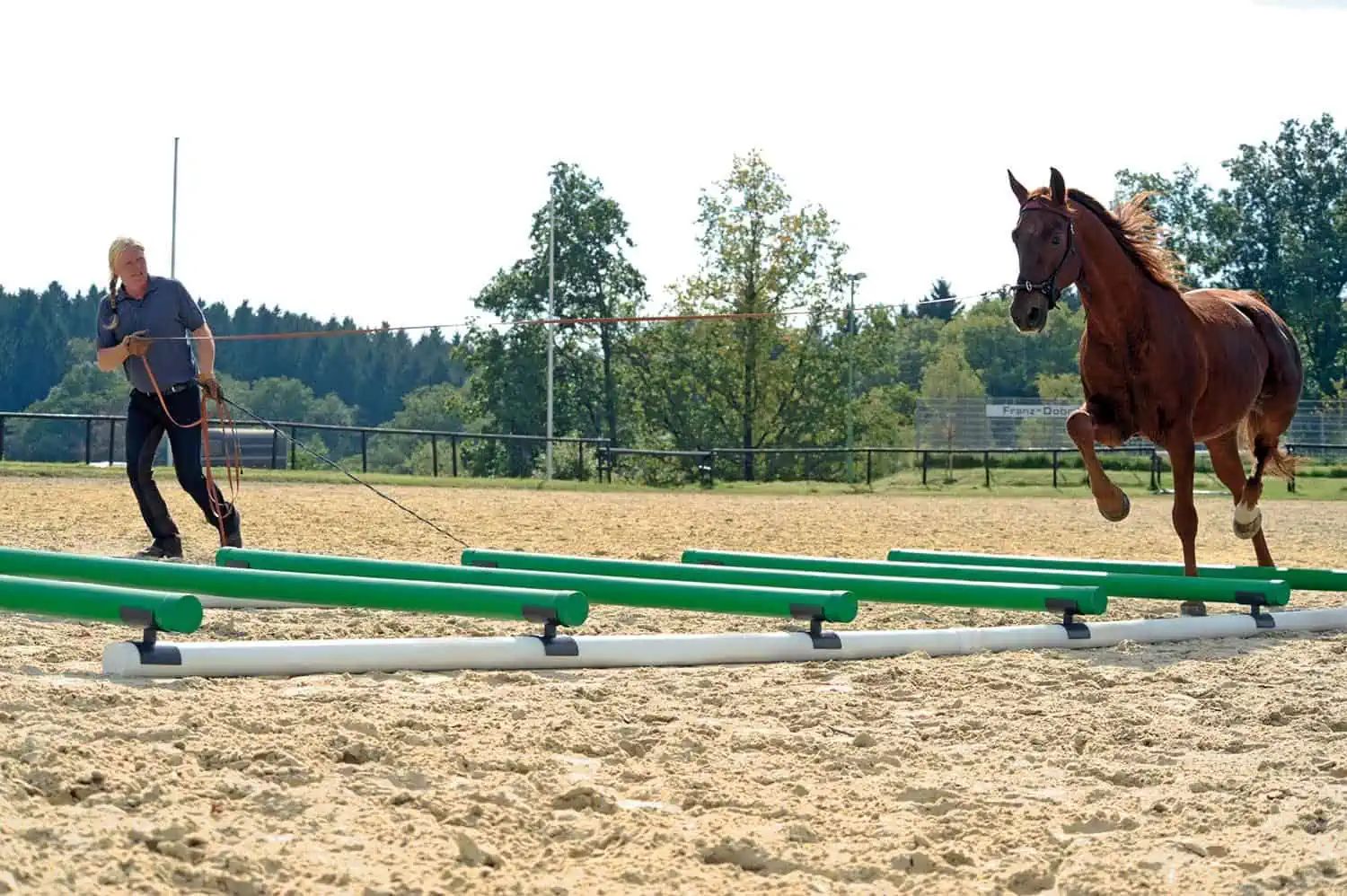 Avec le système WingX, tu pourras créer des parcours variés et stimulants pour tes chevaux, favorisant ainsi leur développement musculaire et leur souplesse. Le montage est simple et rapide, ce qui en fait un outil idéal pour une utilisation quotidienne. Les embouts maintiennent les barres fermement en place, minimisant ainsi les risques de blessures pour les chevaux et assurant un environnement d'entraînement sécuritaire.