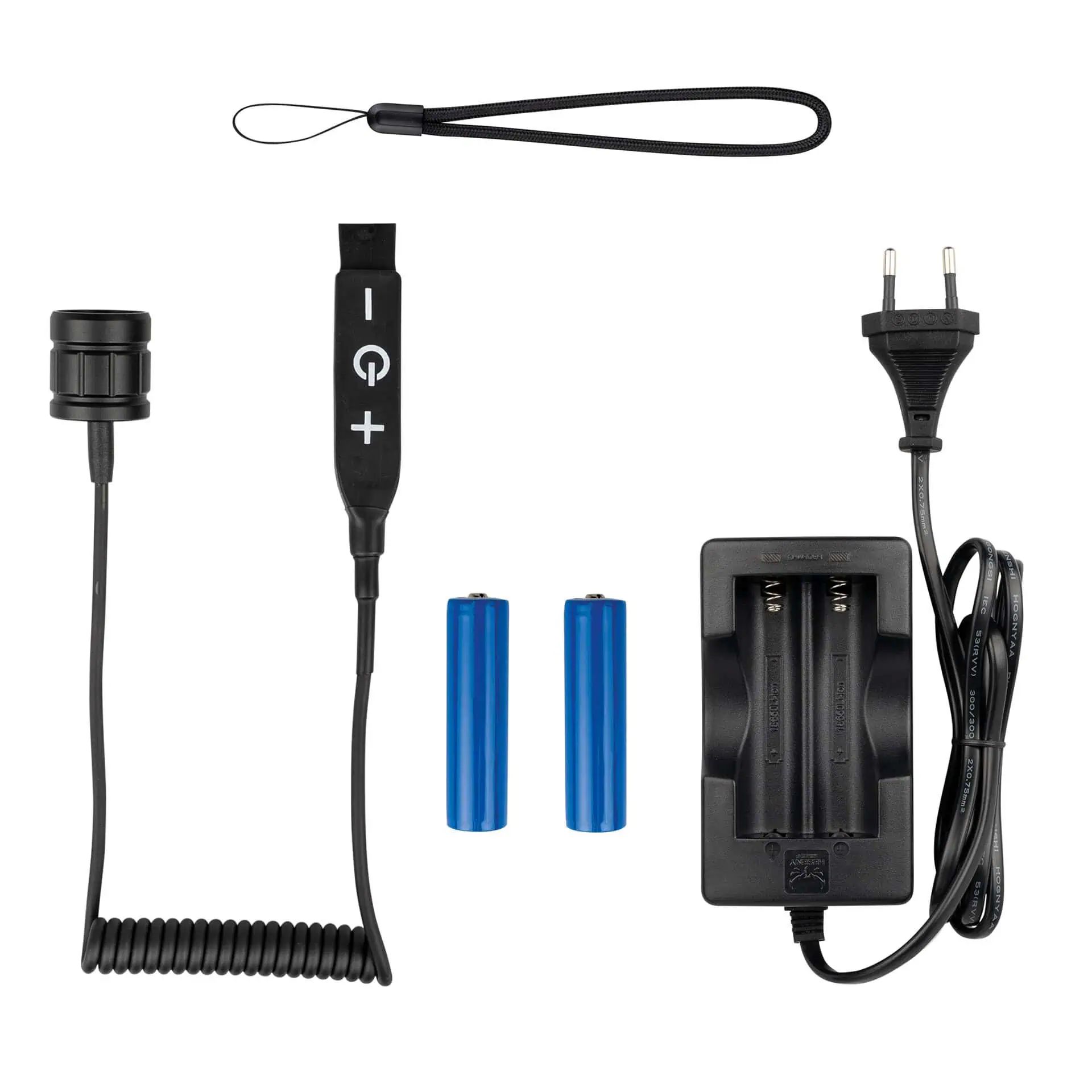 La lampe de chasse nocturne LED Zoom 3 couleurs dispose également d'une fonction zoom pratique permettant de régler le faisceau lumineux en fonction de vos besoins. Elle fonctionne avec une batterie Li-Ion interchangeable de type 18650 de 2600mAh, offrant jusqu'à 1h30 d'autonomie à pleine puissance.