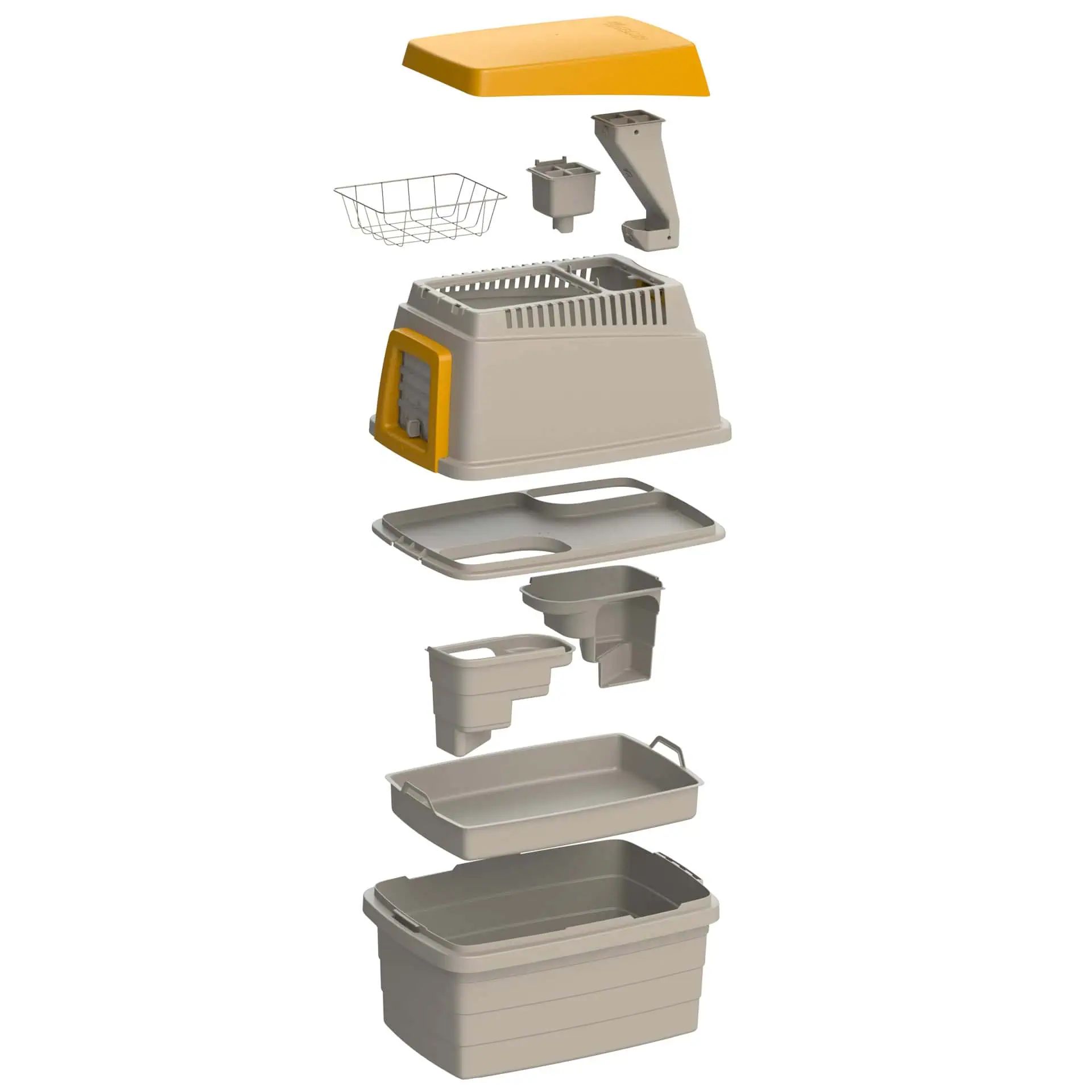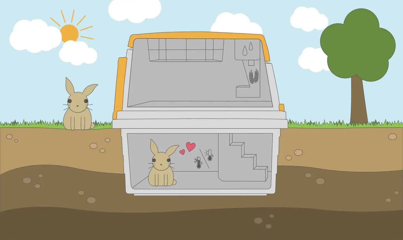 Ce produit 3-en-1 se distingue par sa polyvalence exceptionnelle. Il peut servir de terrier, d'abri mais aussi de caisse de transport pour les déplacements. Grâce à l'auge à foin intégrée, ainsi qu'aux distributeurs d'eau et de nourriture, vos lapins sont correctement nourris même sur de longues périodes. Pour répondre aux besoins d'un habitat naturel, ce produit dispose de deux entrées/sorties, évitant ainsi toute concurrence entre les lapins et garantissant une atmosphère harmonieuse.
