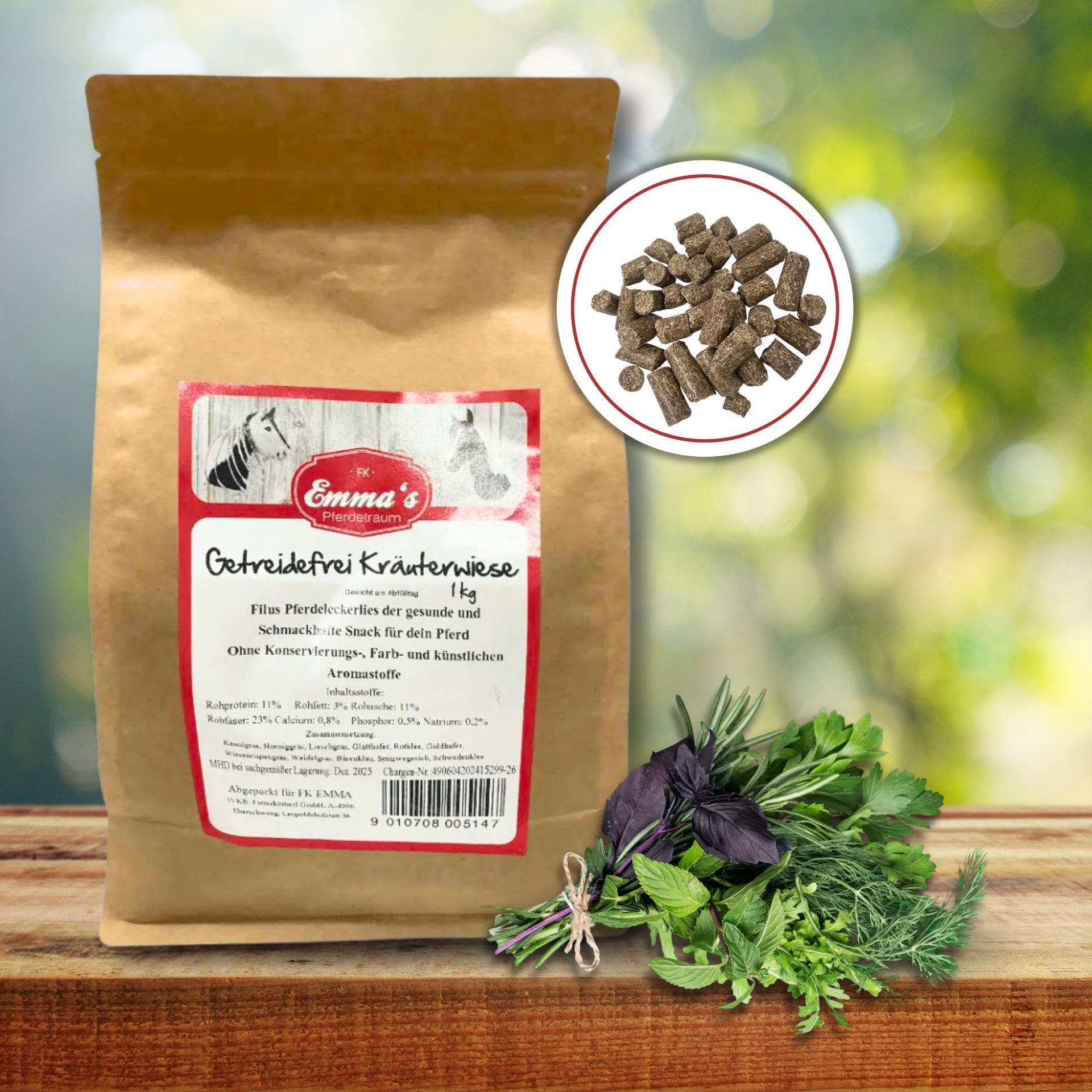 Friandise Emmas Horse Herbes de prairie sans céréales - Une récompense naturelle et savoureuse pour votre cheval