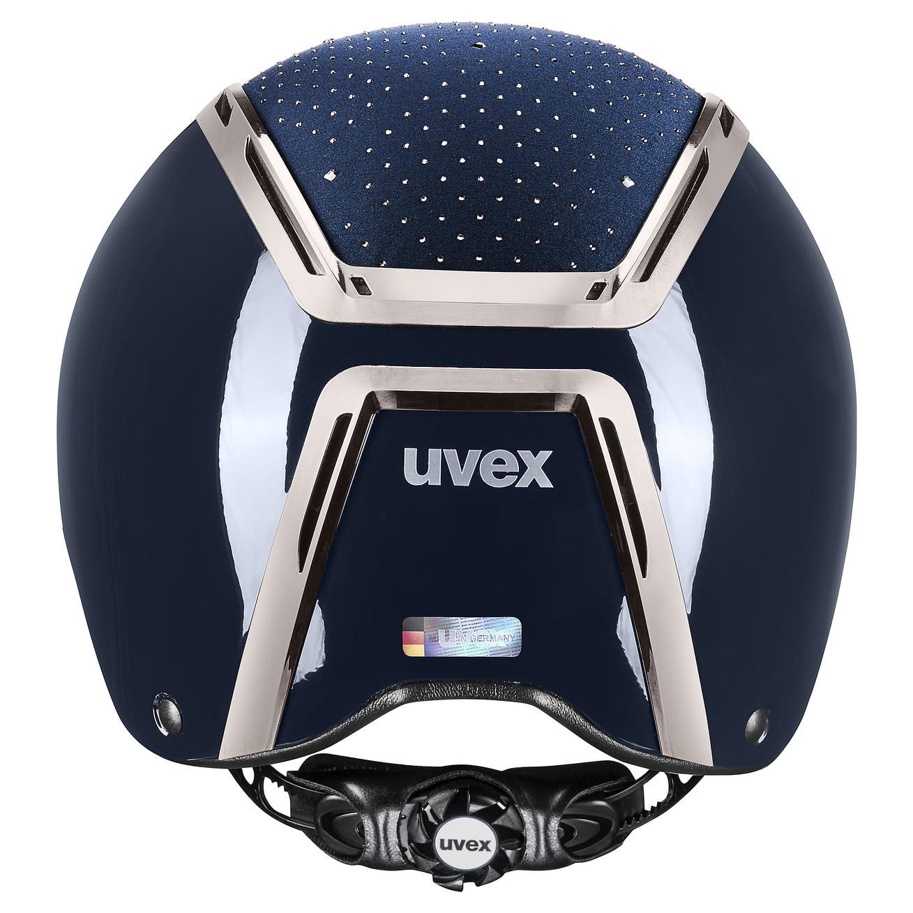 Le casque d'équitation uvex exxeed glow combine une apparence élégante avec une fonctionnalité et une sécurité maximales. Avec sa coque en laque brillante, son matériau satiné et plus de 450 cristaux Swarovski®, ce casque établit de nouveaux standards en toutes circonstances. Que ce soit pendant l'entraînement ou en compétition, ce casque offre une protection optimale et un style inégalé.