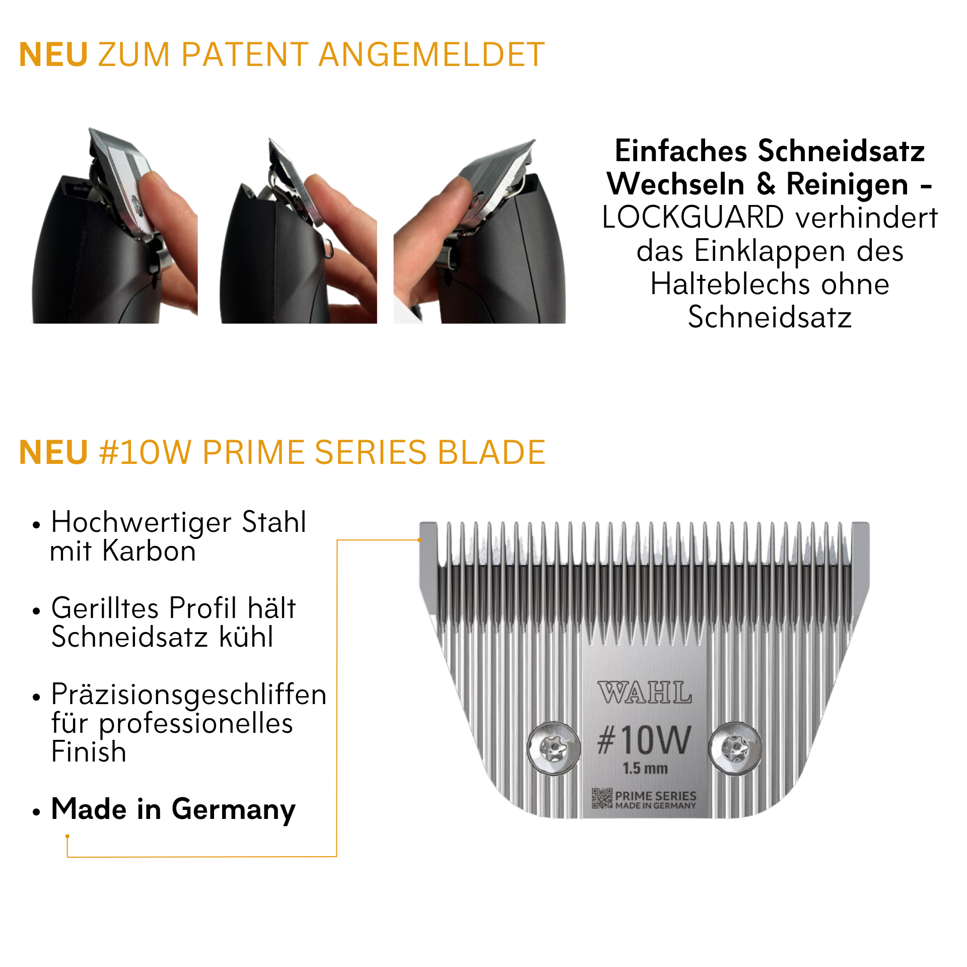 Avec deux niveaux de vitesse (3000 et 3700 tr/min), la Wahl KM Supera offre une flexibilité pour des tontes douces et puissantes. Le design ergonomique de la tondeuse assure une manipulation confortable, tandis que le faible poids de seulement 411 g facilite le travail. La lame de précision #10W en acier de haute qualité à haute teneur en carbone garantit une finition professionnelle et reste fraîche même après une utilisation prolongée grâce au profil rainuré. Le système de fixation optimisé avec protection LOCKGUARD rend la manipulation lors du changement et du nettoyage de la lame particulièrement facile et sûre.