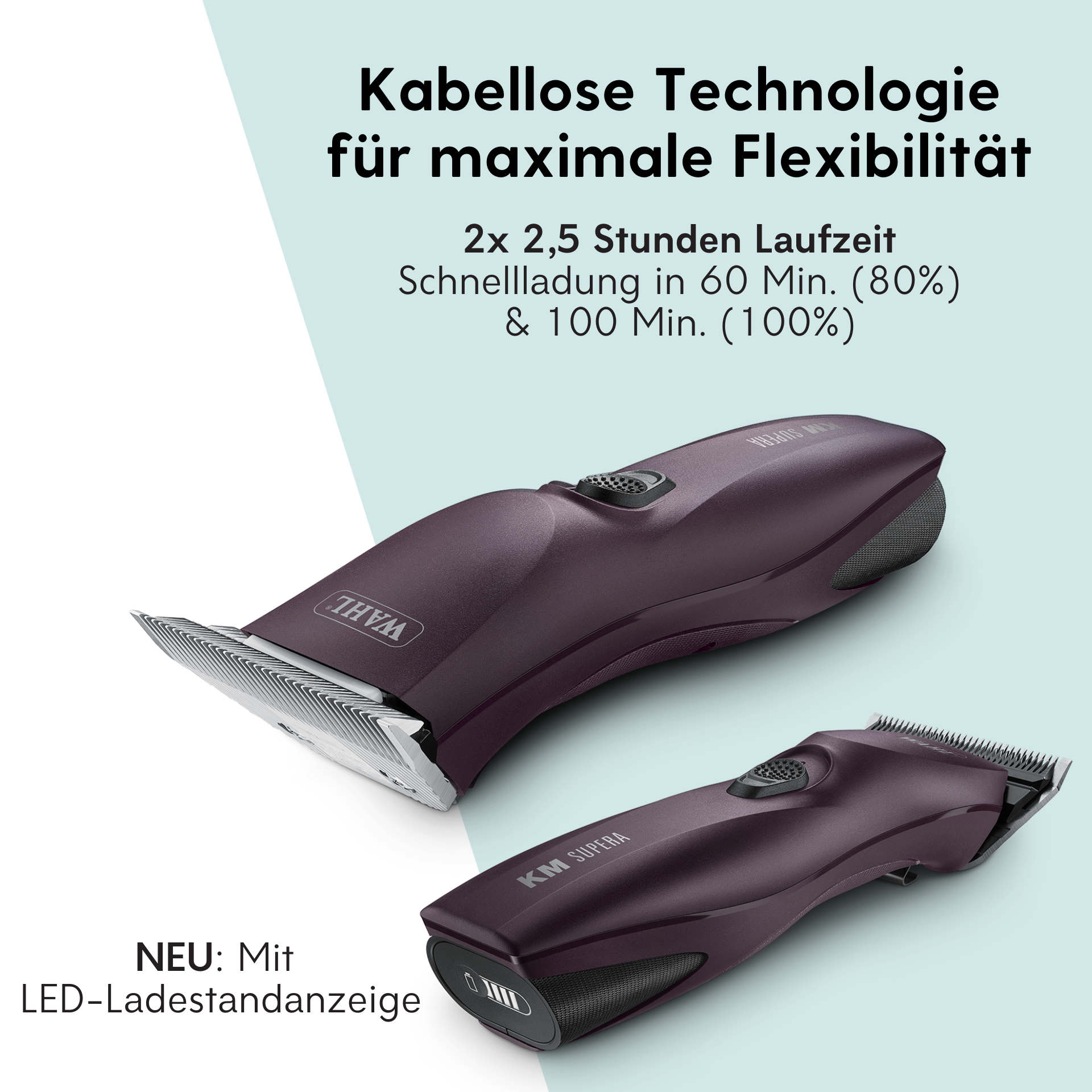 1x Wahl KM Supera Tondeuse pour Chevaux 2x Batterie