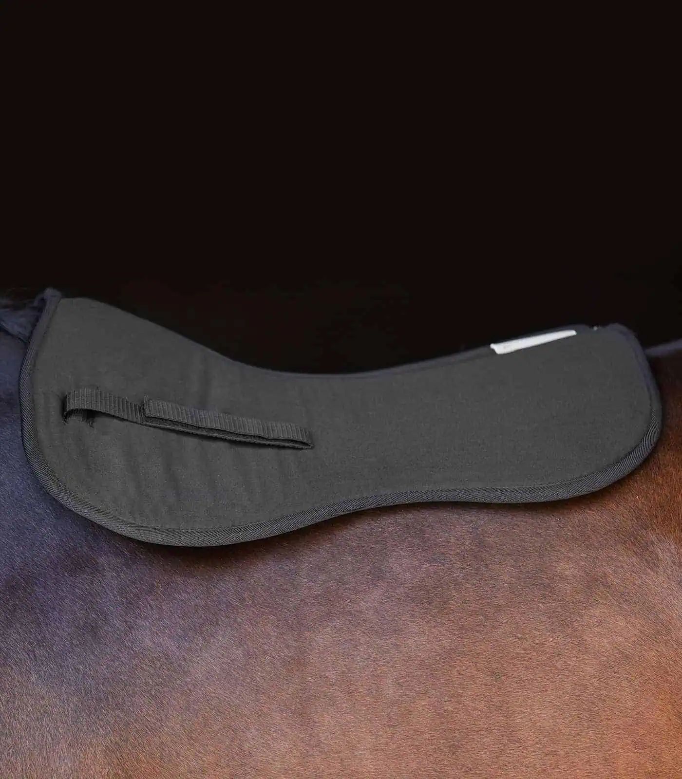 Le tapis de selle en matière résistante absorbe bien les chocs. La mousse Memory Foam s’adapte parfaitement au dos du cheval et offre une protection contre les points de pression. Livré avec lanière de sangle.