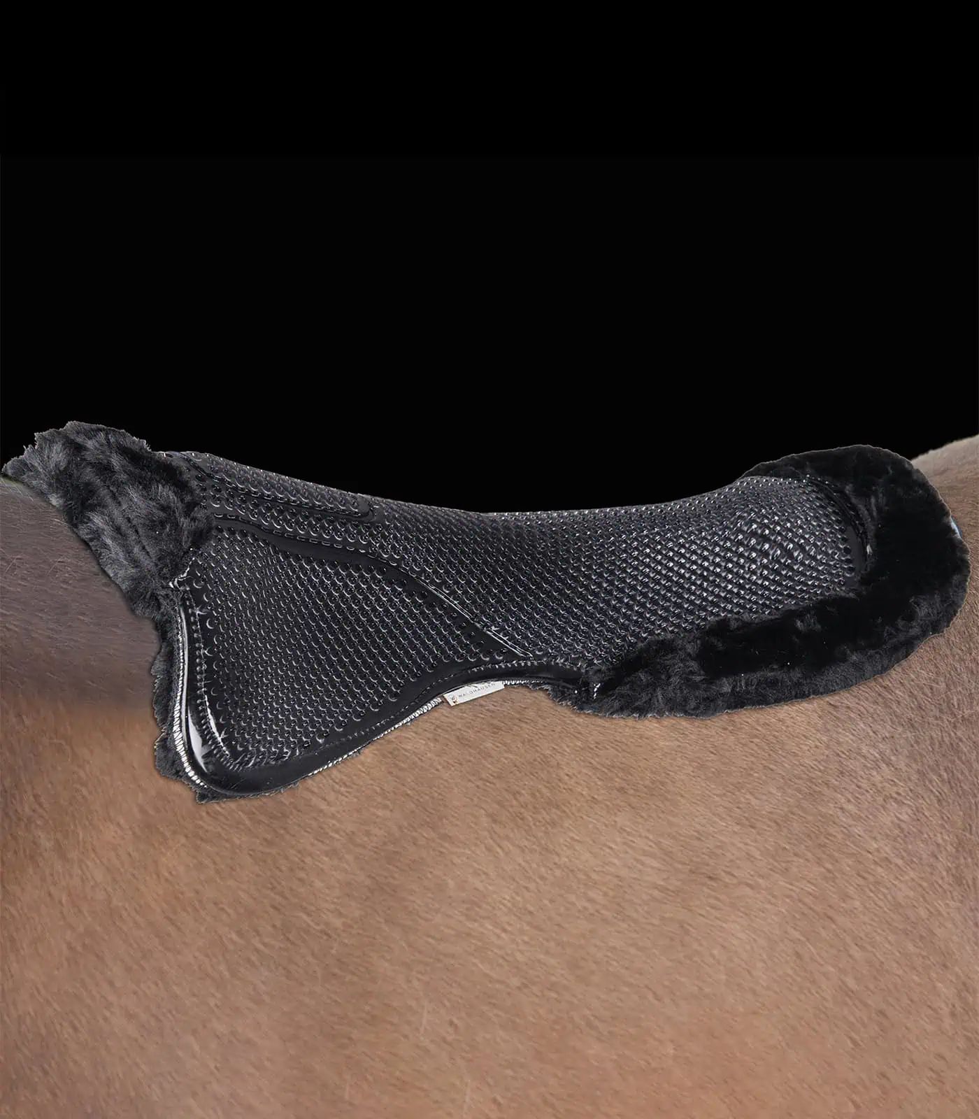 Pad gel en mouton synthétique d’excellente qualité. Bonne tenue en selle, empêche les points de pression et soulage le dos du cheval. Entièrement doublé en mouton synthétique. Protection de garrot et de troussequin en mouton synthétique. Perforé pour favoriser l’évacuation de l’humidité.