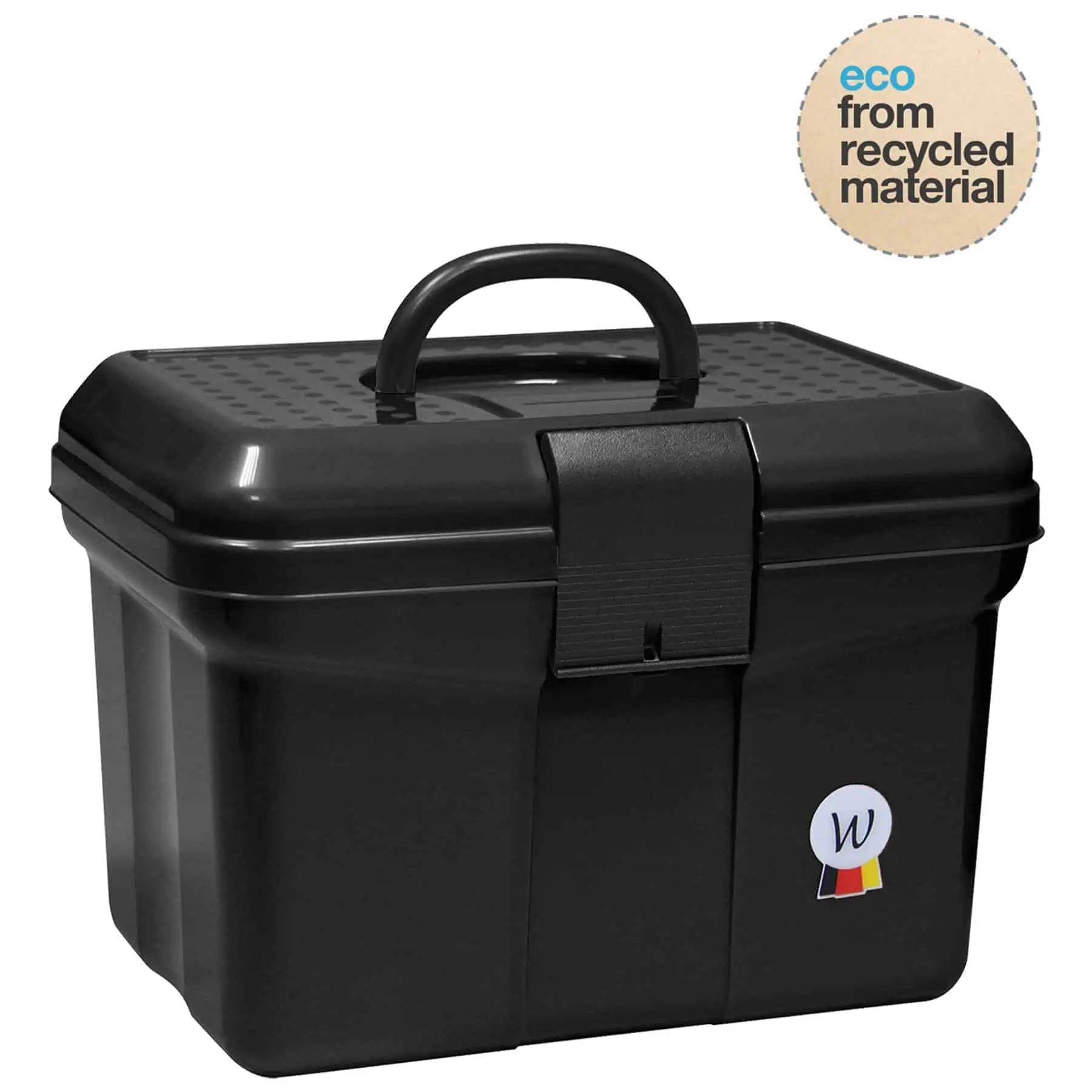 Ce coffre d’excellente qualité en plastique recyclé est le parfait compagnon dans l’écurie ou lors des compétitions. Équipé d’une poignée rétractable, d’une fermeture á ressort, de 2 compartiments réglable, d’un petit compartiment détachable, ce coffre léger est un véritable succès.