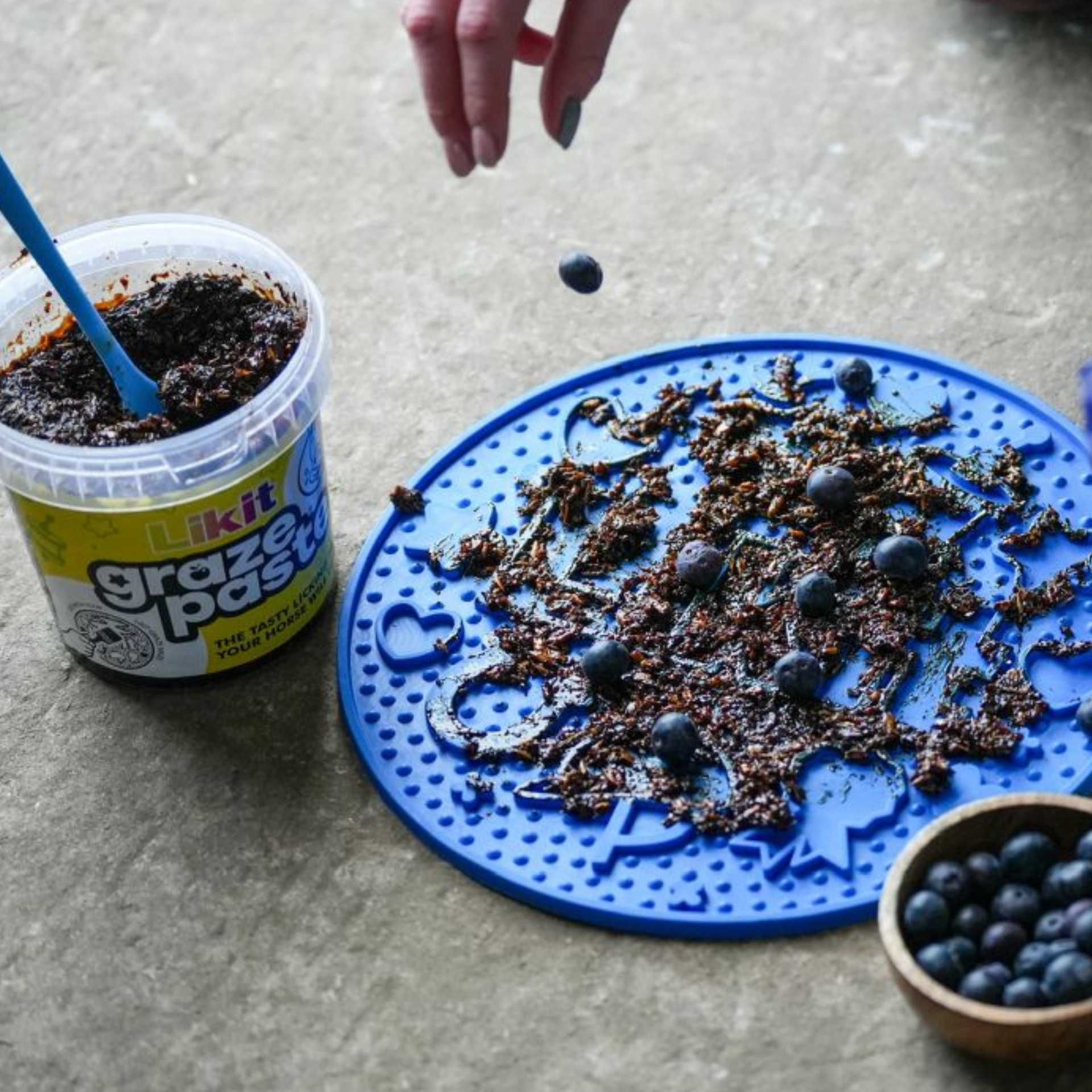 À étaler sur le tapis de léchage Graze Maze de Likit. Elle se compose, entre autres, de mélasse, d’avoine, d’orge et de farine de blé complet.