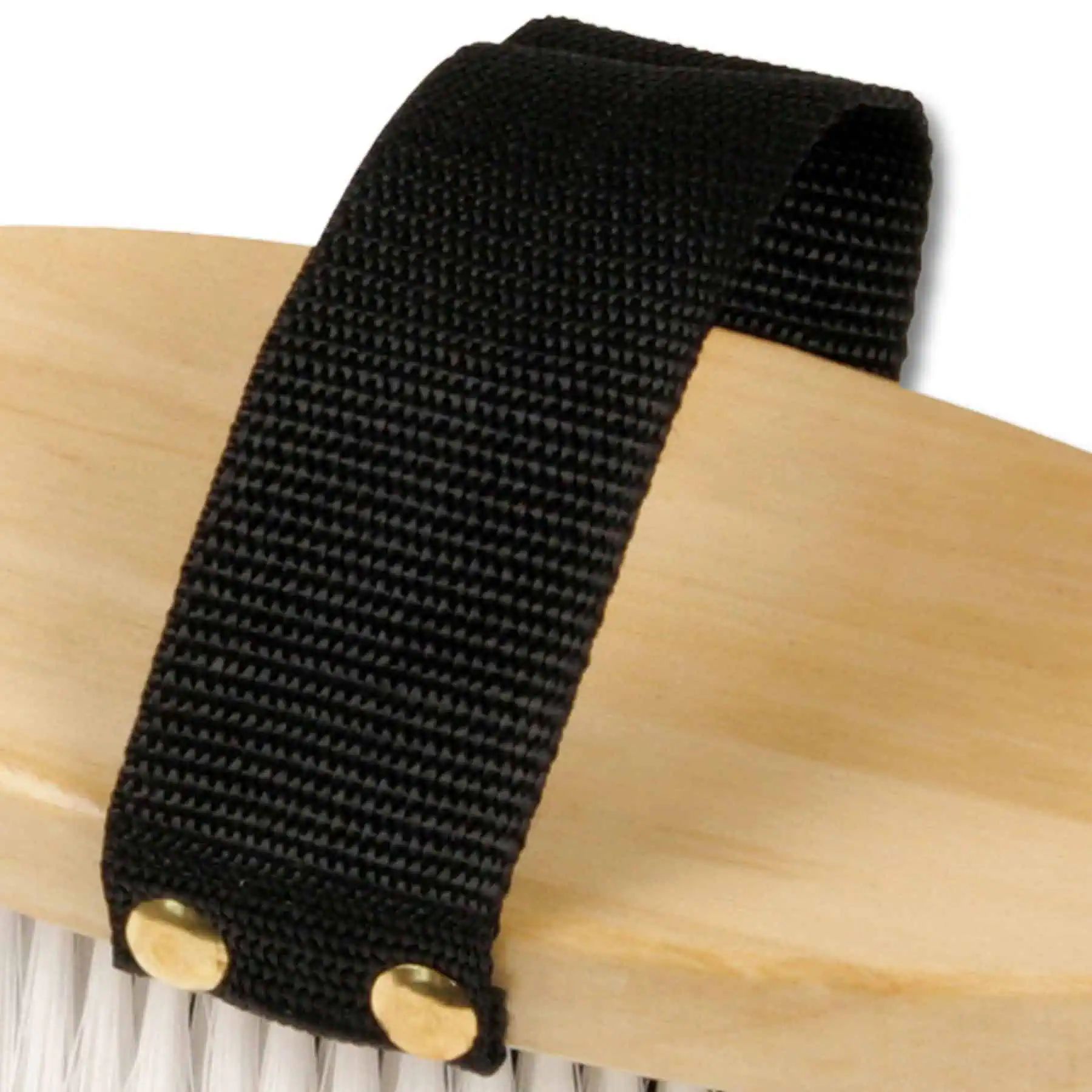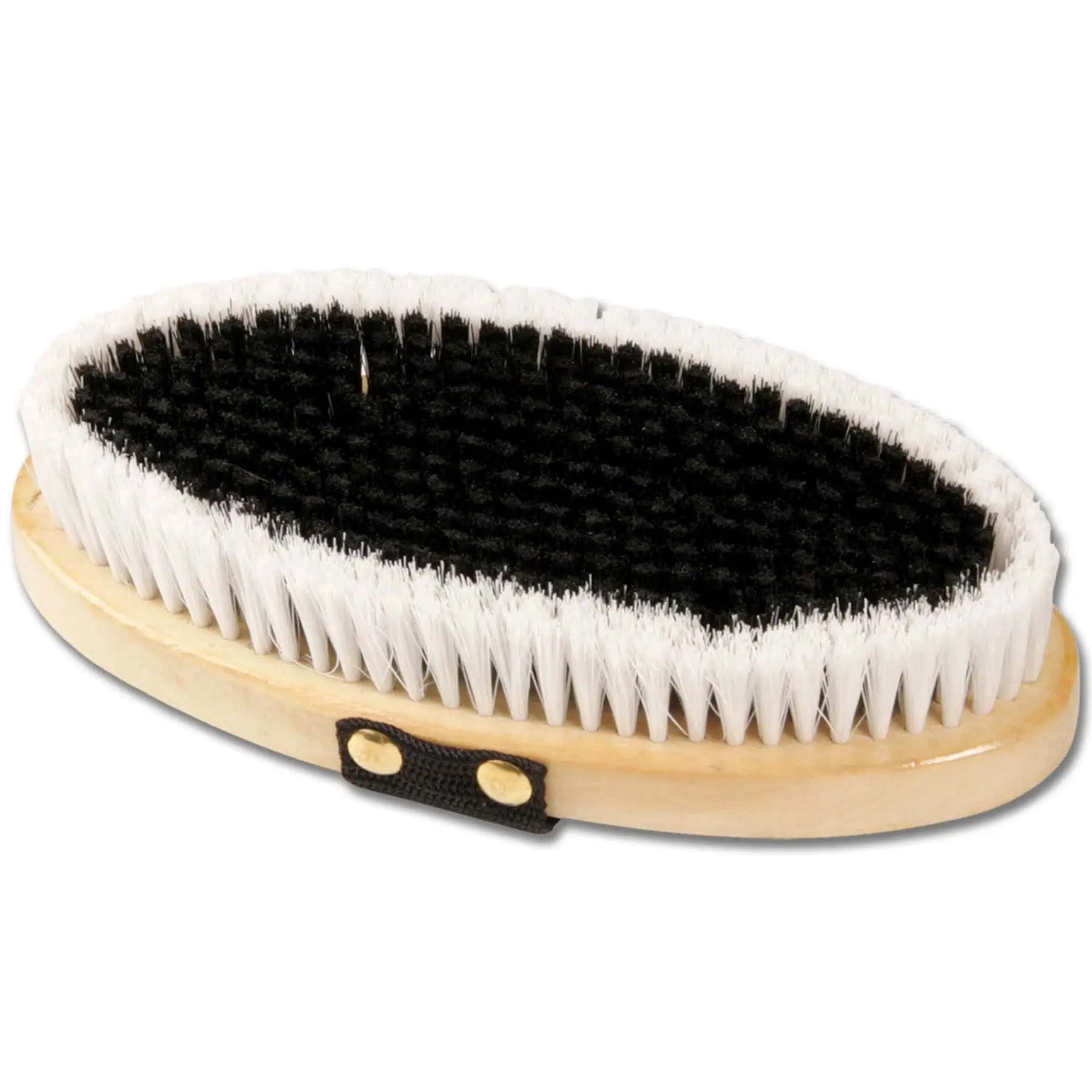 Poils synthétiques de taille moyenne noirs et blancs, dos en bois naturel.