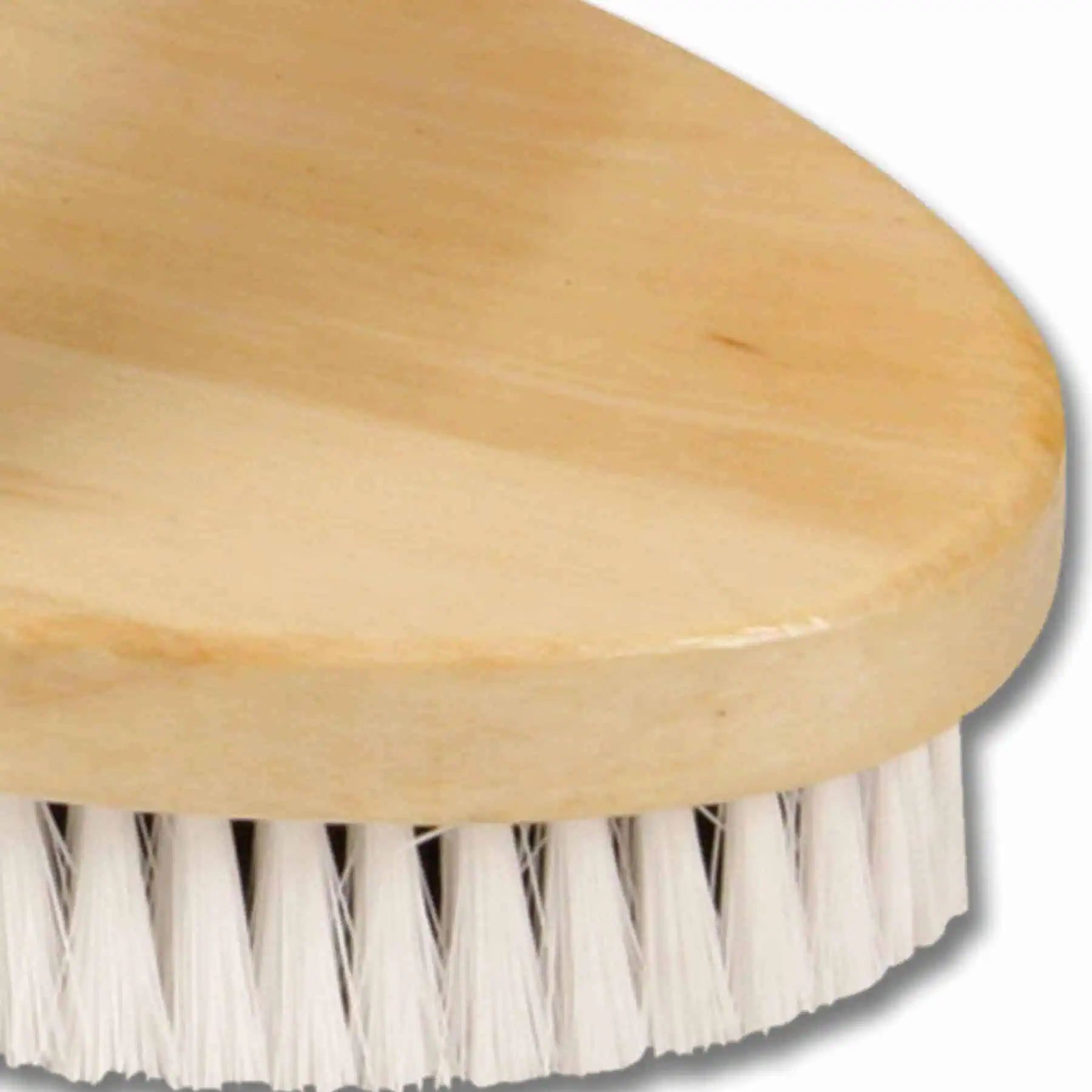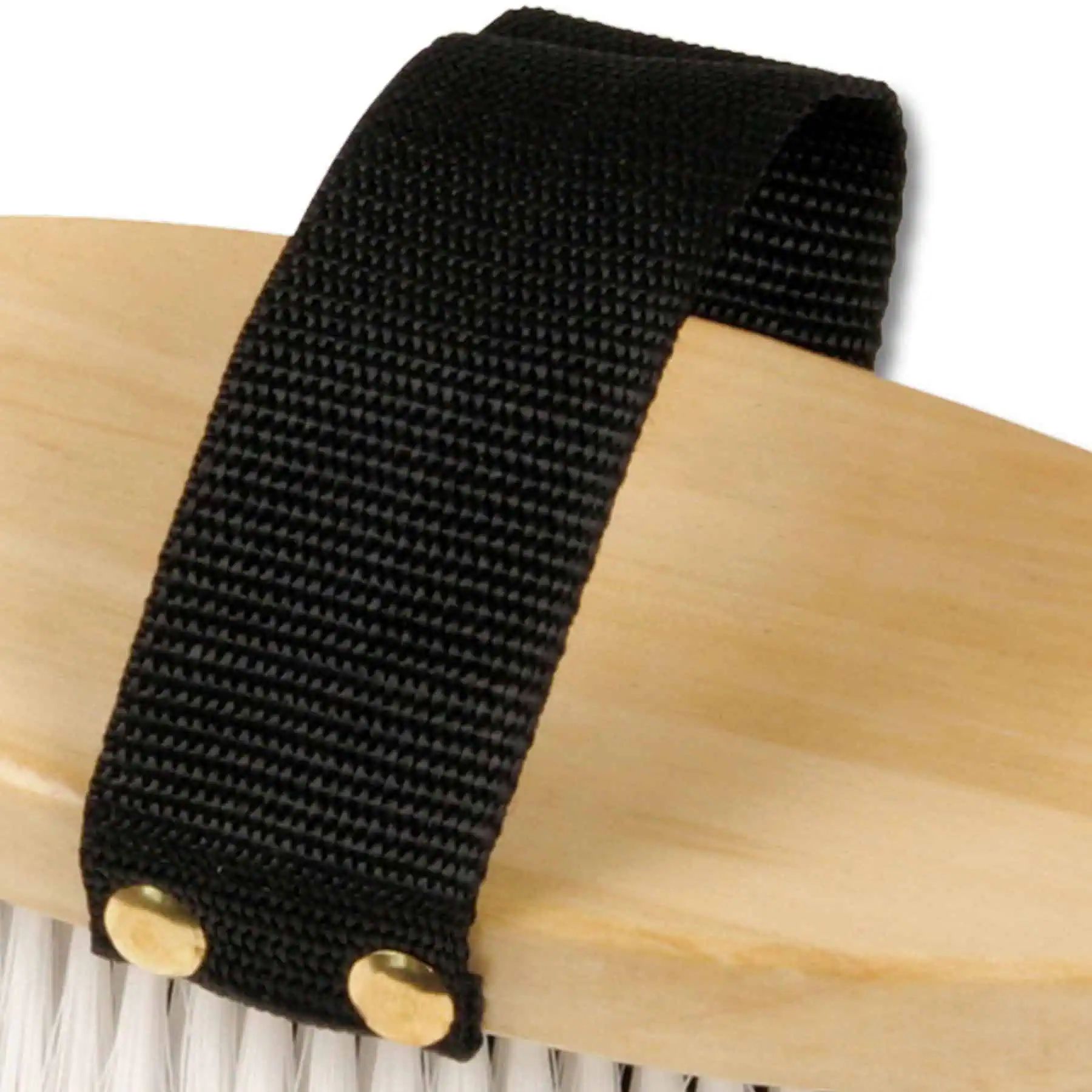 Poils synthétiques de taille moyenne noirs et blancs, dos en bois naturel.