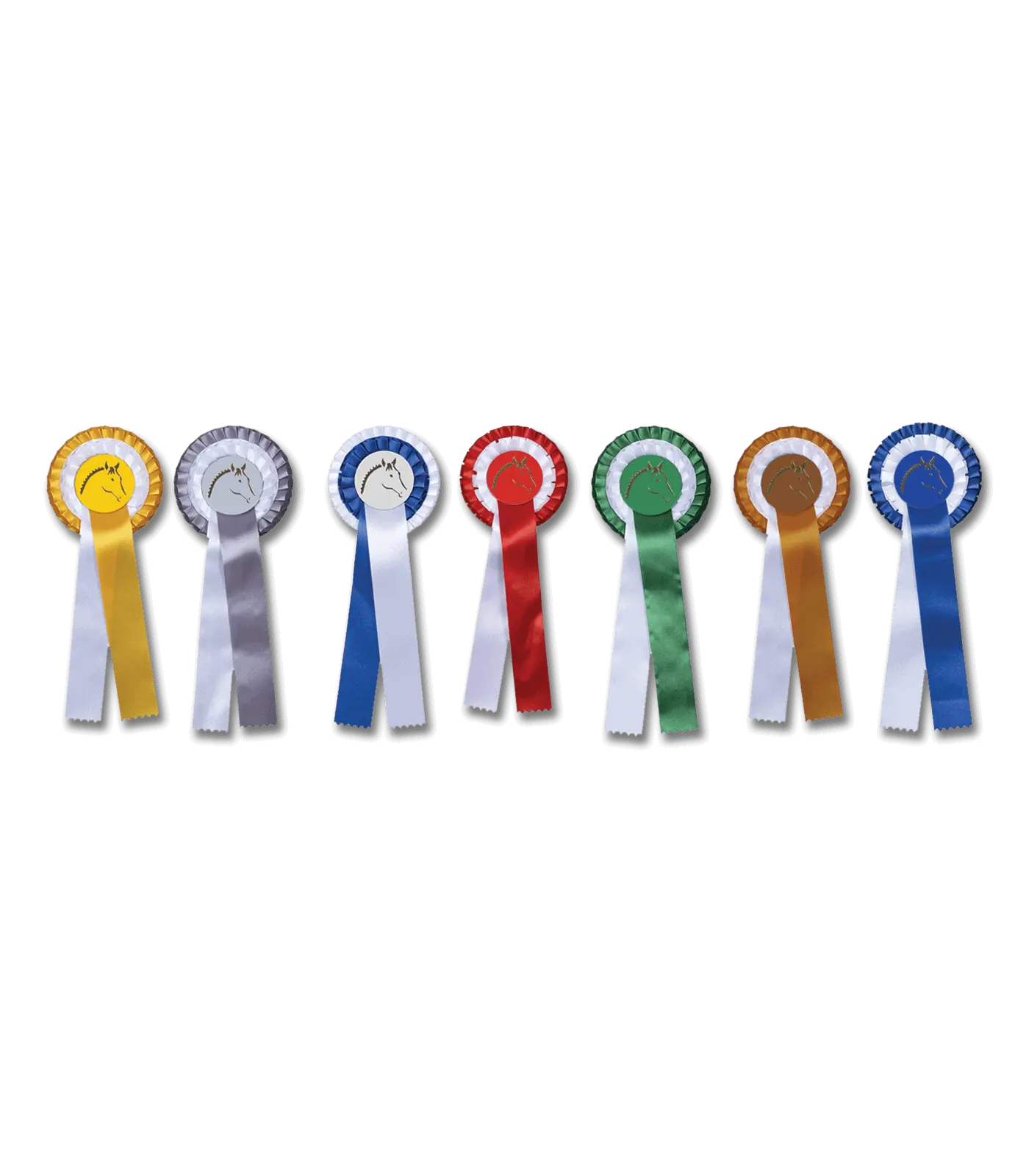 La couleur de placement peut se combiner avec un ruban blanc et une rosette blanche. Motif tête de cheval au centre (carton)