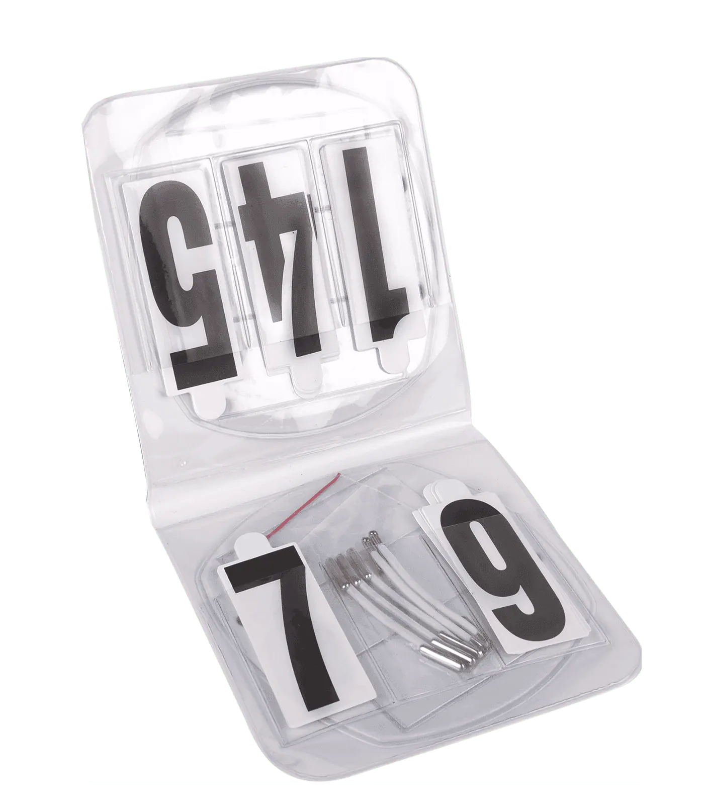 Le compagnon idéal pour toutes les compétitions ! Numéros de tête en plastique souple, sans bords pour les têtes de chevaux sensibles. Changement aisé du numéro de départ. Réglable de 1 à 9999. Élastiques de fixation inclus La paire.