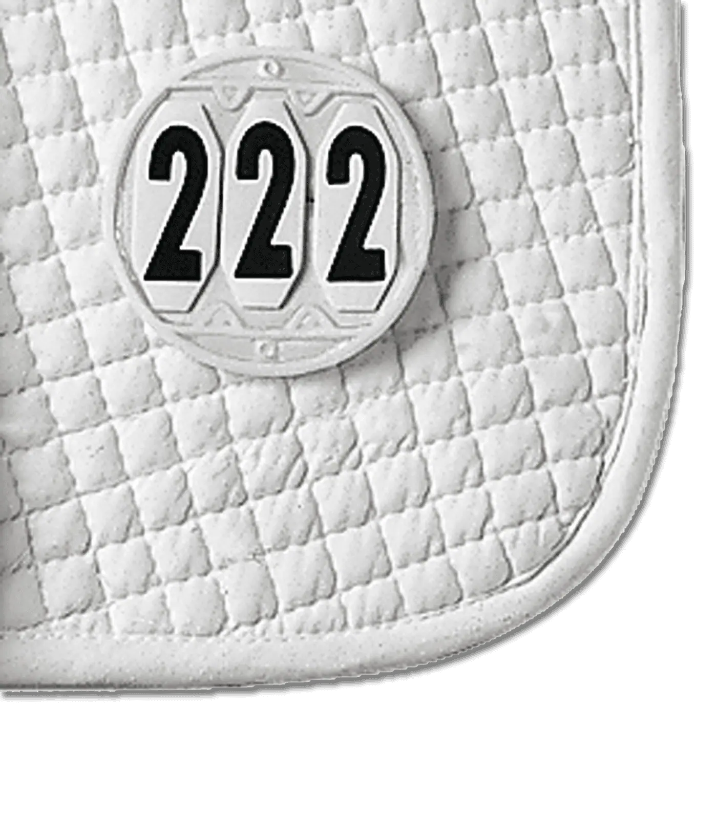 Parfaits pour les chevaux à la tête sensible, puisqu’ils ne sont pas placés sur la tête mais sur la chabraque. Le support est cousu sur la chabraque , les numéros sont simplement scratchés dessus et il suffit de les retirer pour laver la chabraque. Les chevaux sensibles ou nerveux ne sont pas dérangés par les numéros et peuvent donner le meilleur d’eux-mêmes. Numéros de 1 à 999. La paire.