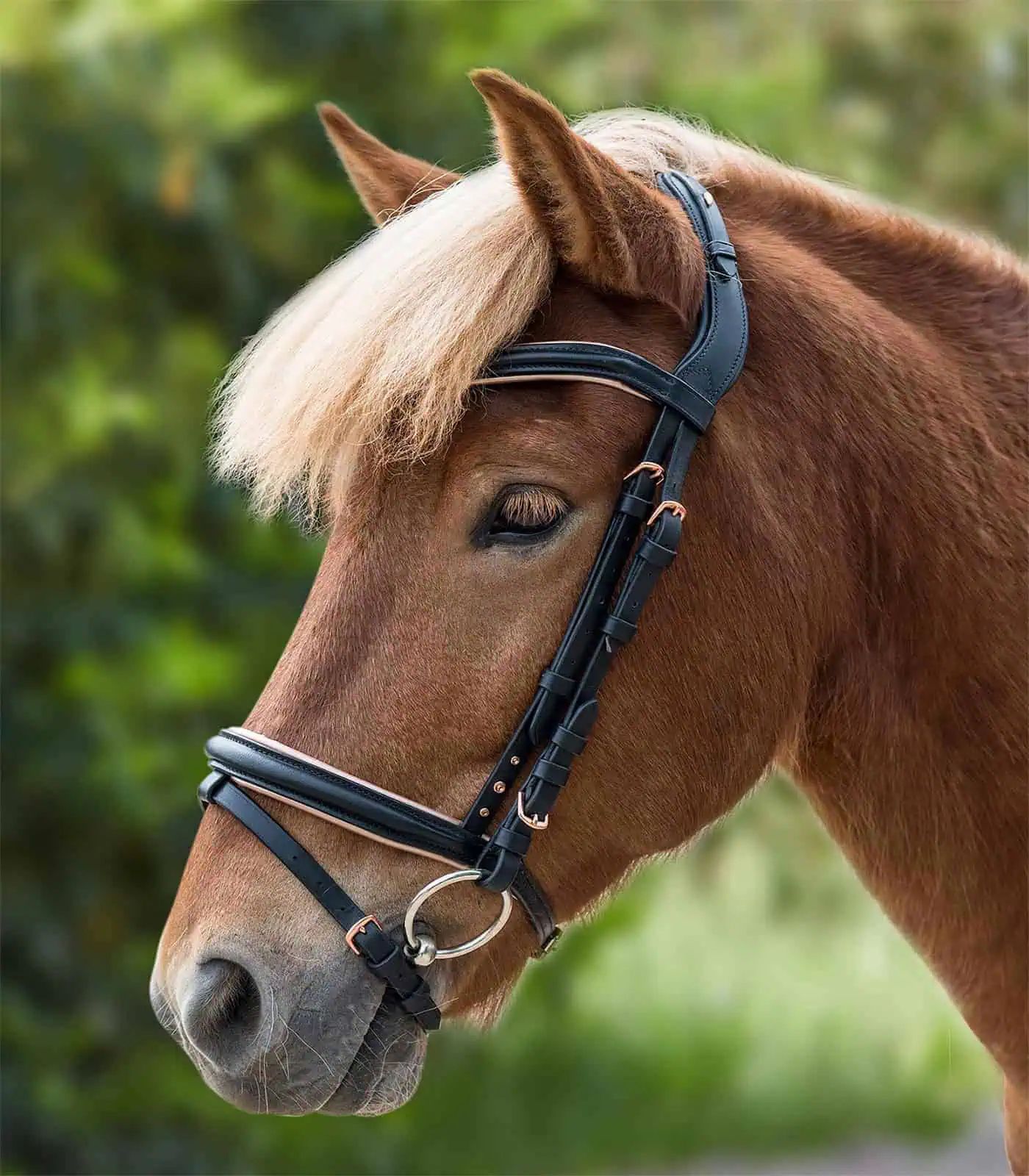- Rembourrage de couleur or rose sur la muserolle
