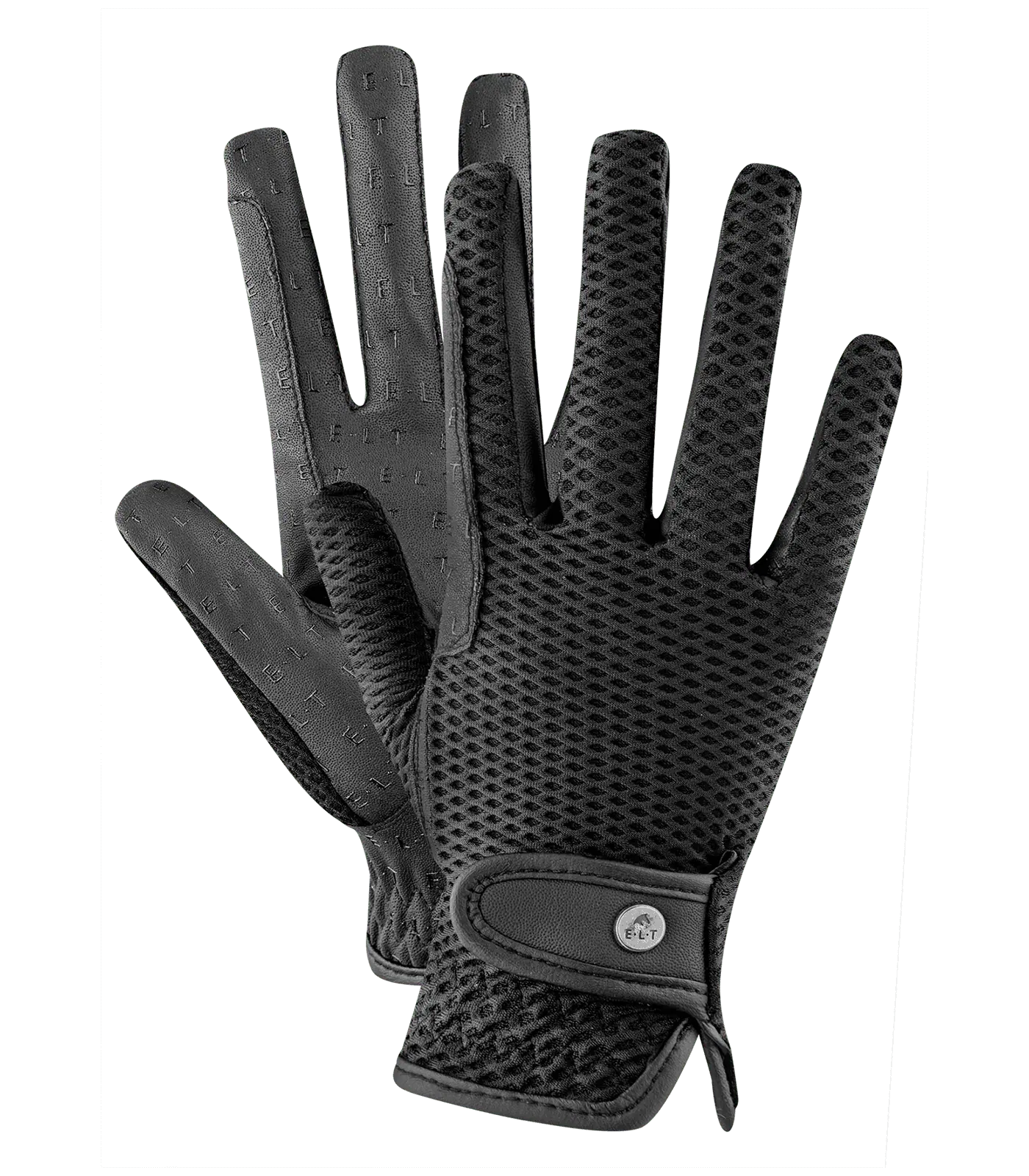 - Ajustement par fermeture autoagrippante sur le dos de main et broche avec logo E·L·T