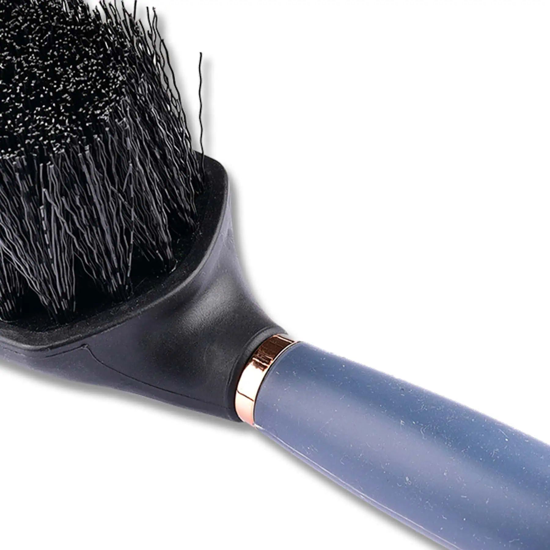 Belle brosse avec des poils synthétiques robustes. La poignée gel s’adapte parfaitement à la paume de la main.