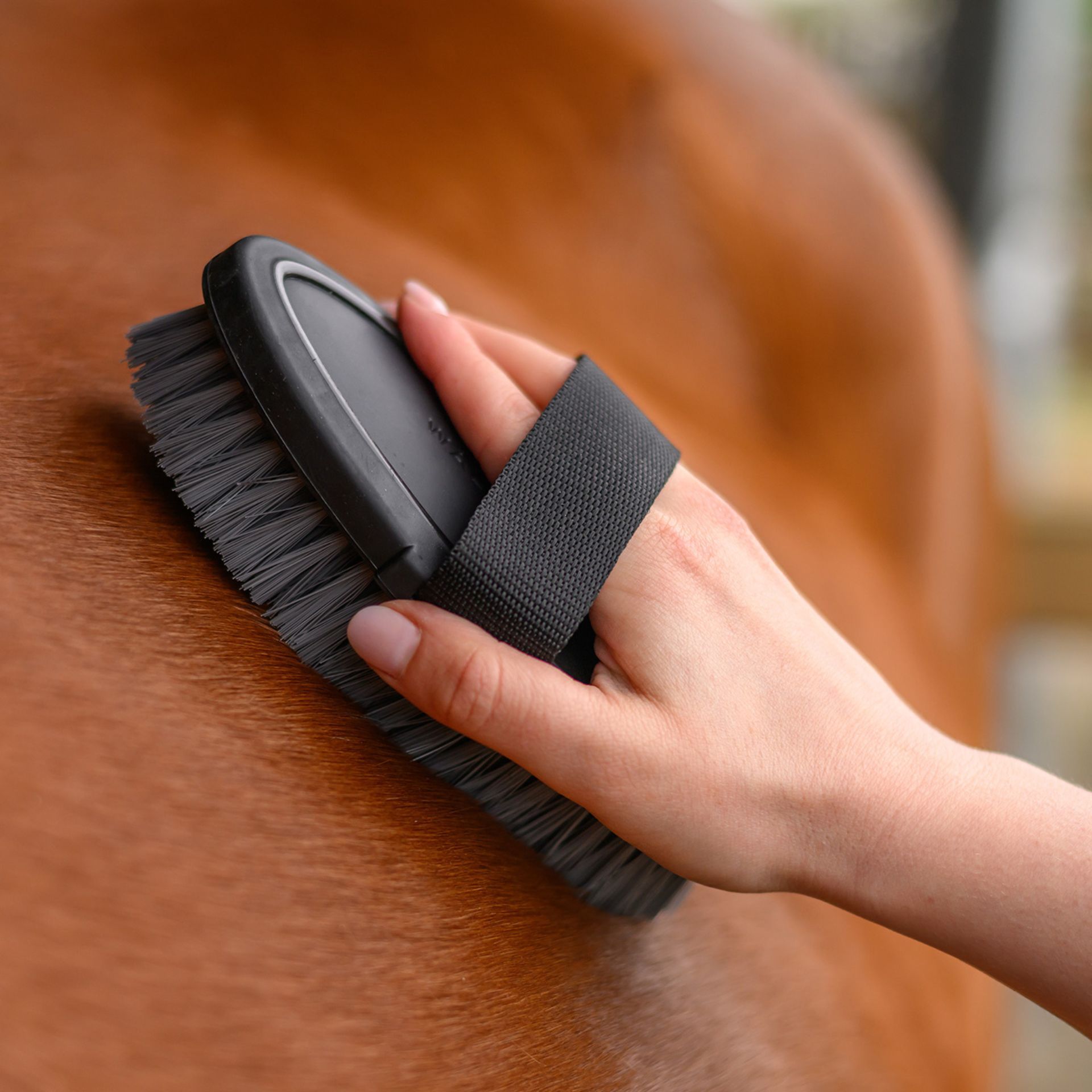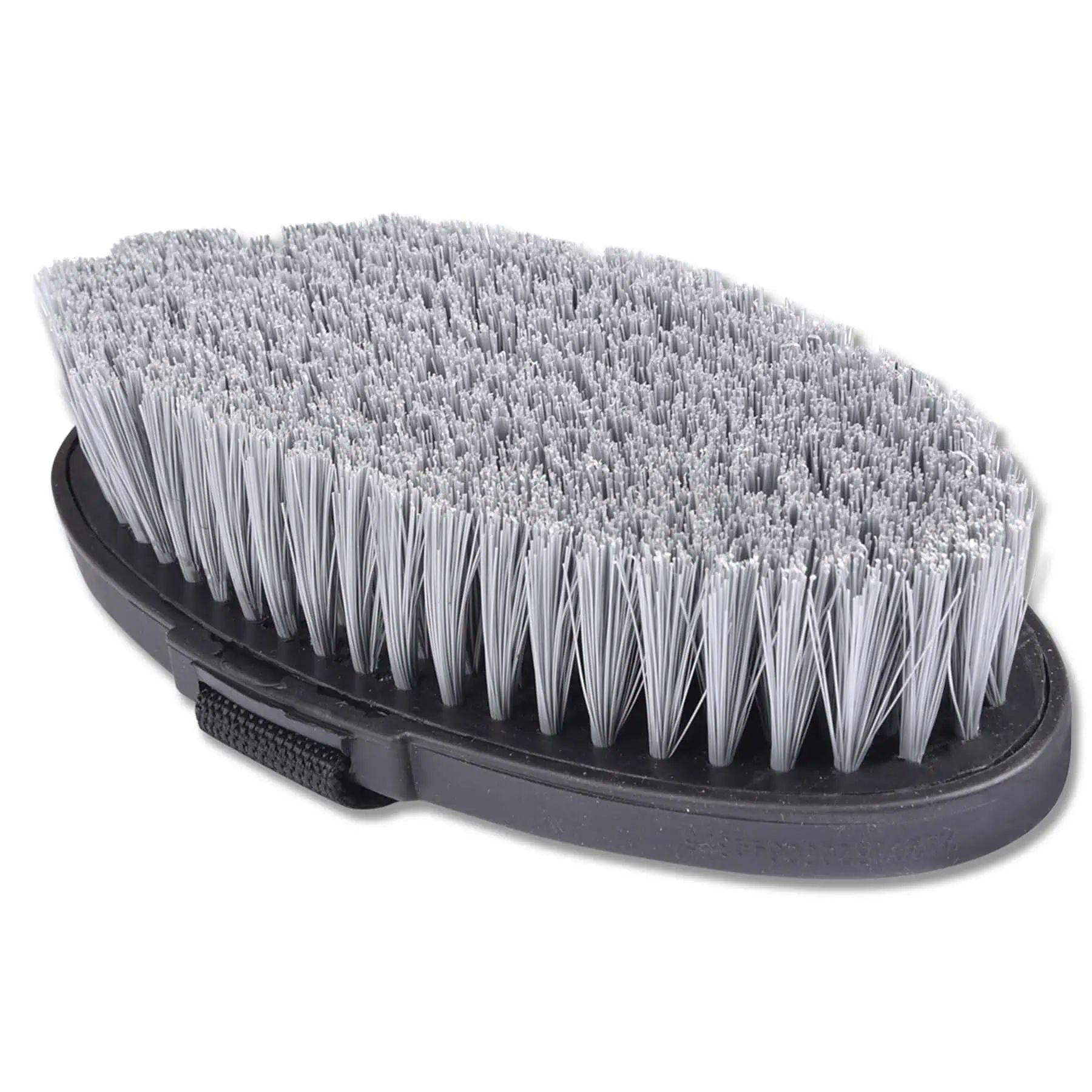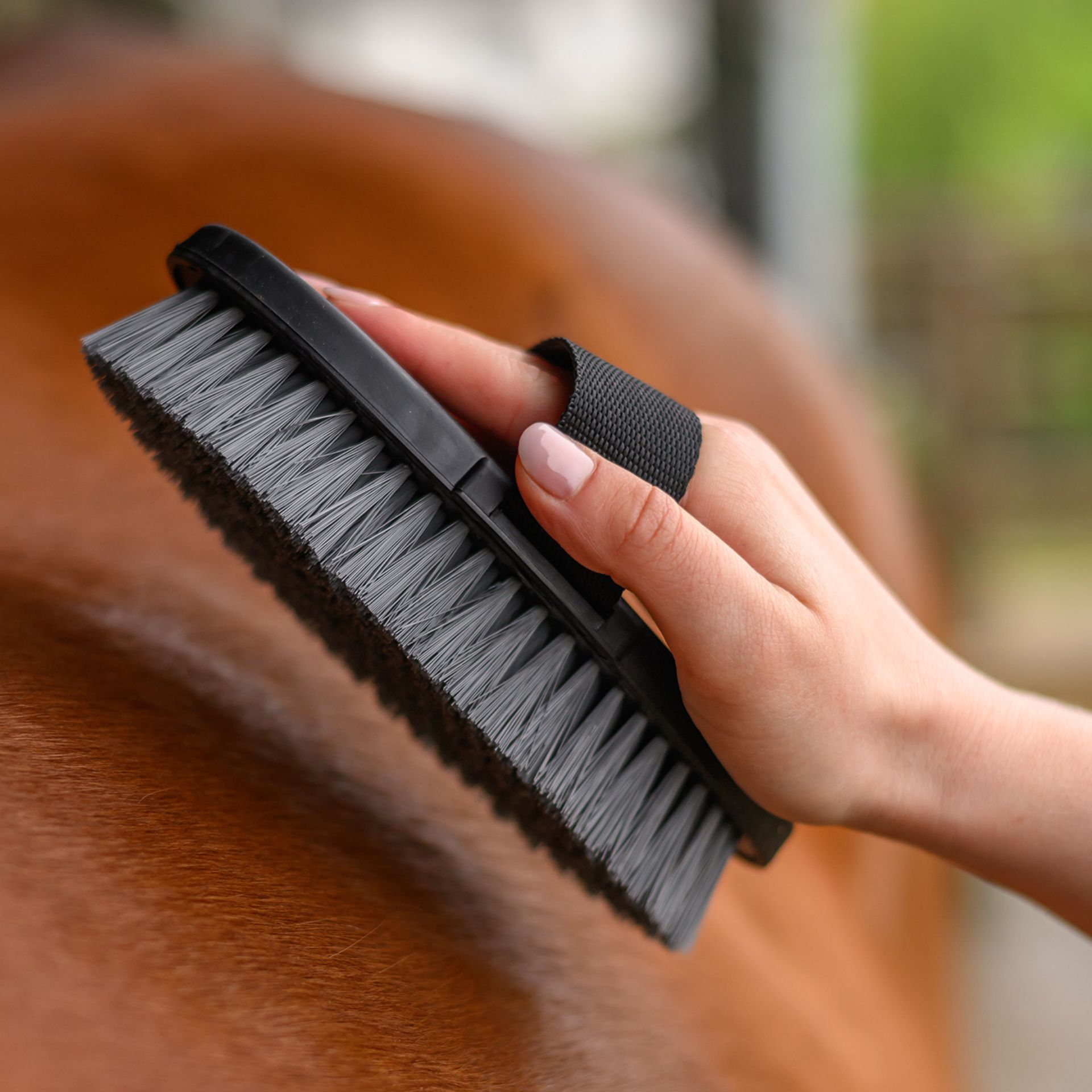 Poils synthétiques semi-rigides et dos en cuir synthétique de grande qualité.