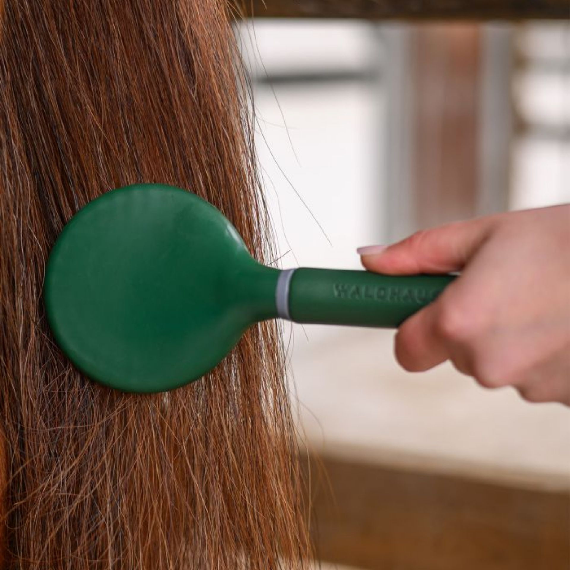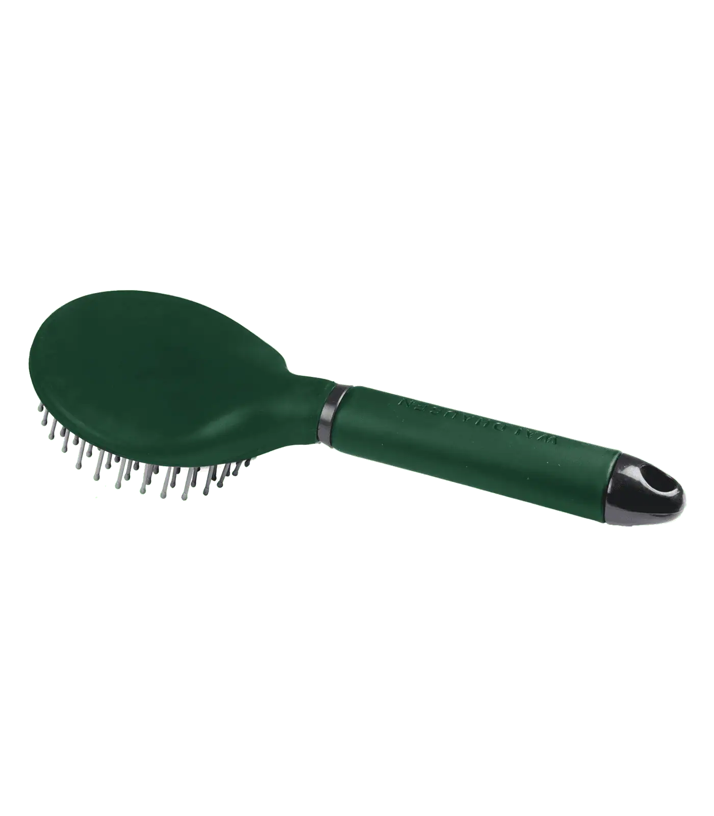Brosse pour crinière et queue à manche en cuir synthétique de grande qualité.