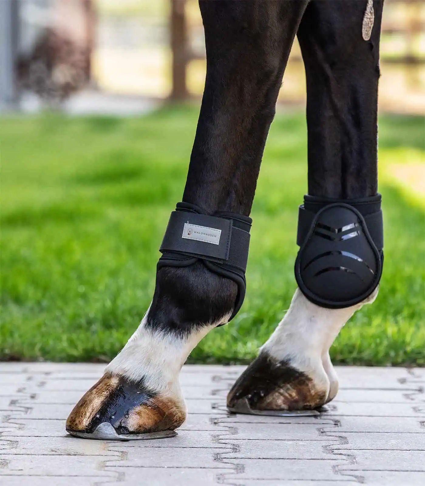 Une matière souple de qualité et facile à entretenir enveloppe la patte du cheval en toute sécurité, assurant ainsi une protection idéale lors du travail quotidien ou en compétition. La coquille stable à l’intérieur protège à coup sûr contre les chocs et les égratignures. Les fermetures à scratch renforcées maintiennent les protège-boulets bien en place sur la patte du cheval. La paire.