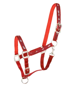Licol avec applications petits chevaux. Muserolle et têtière doublés. Bouclerie brillante robuste. Réglage multiple muserolle et têtière. Nous recommandons les longes de licol assorties 50463.. et 50442.