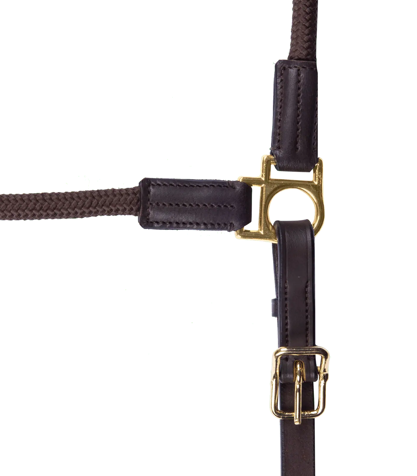 Licol sportif en cuir souple au niveau de la nuque, avec de jolis éléments en corde. Réglage simple de la têtière et du dessous de muserolle.