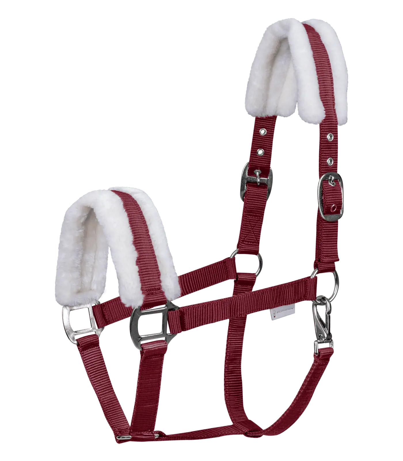 Licol cotonneux au rembourrage moelleux en fourrure synthétique au niveau de la têtière et du dessus de muserolle. Têtière réglable des deux côtés.