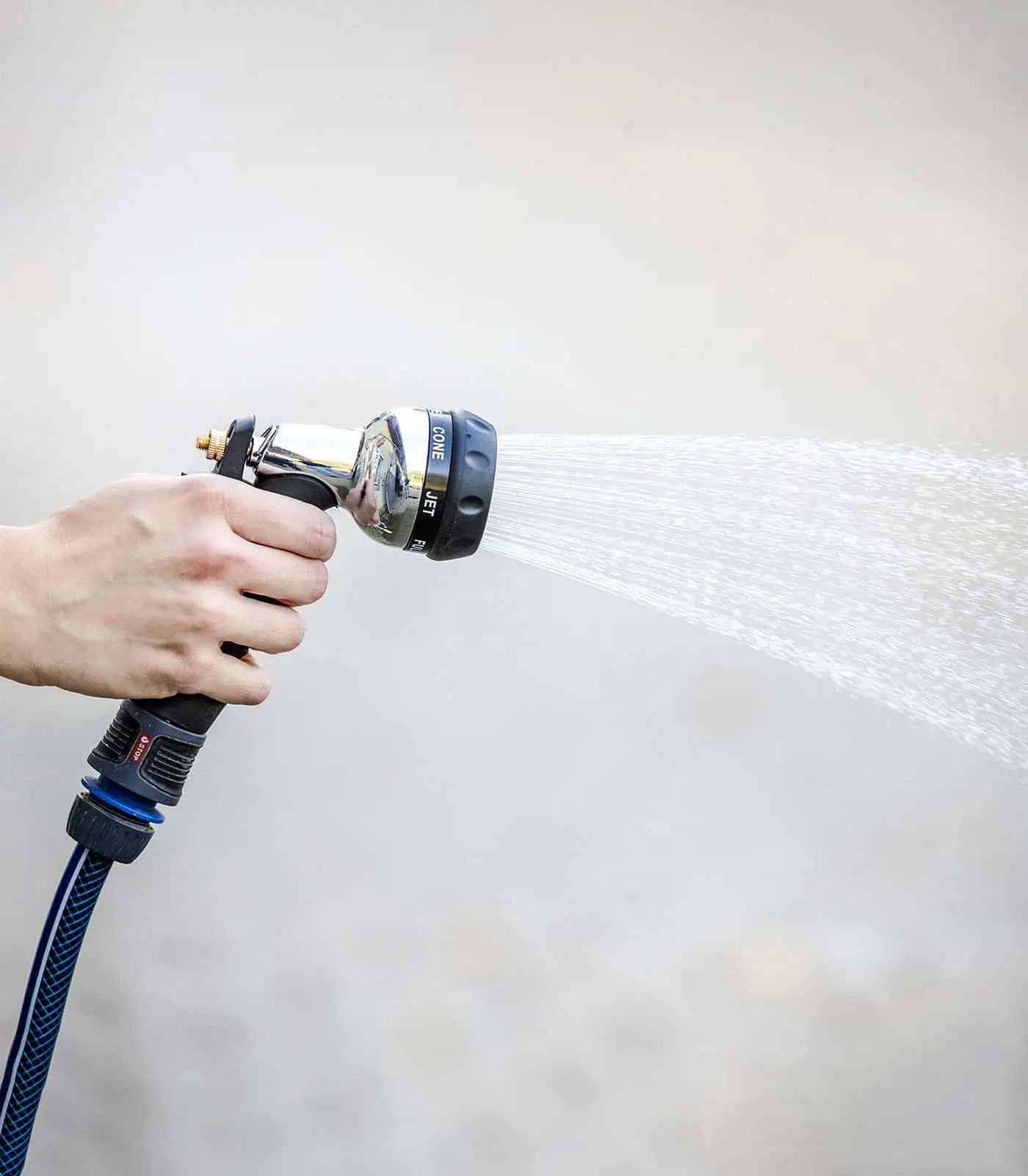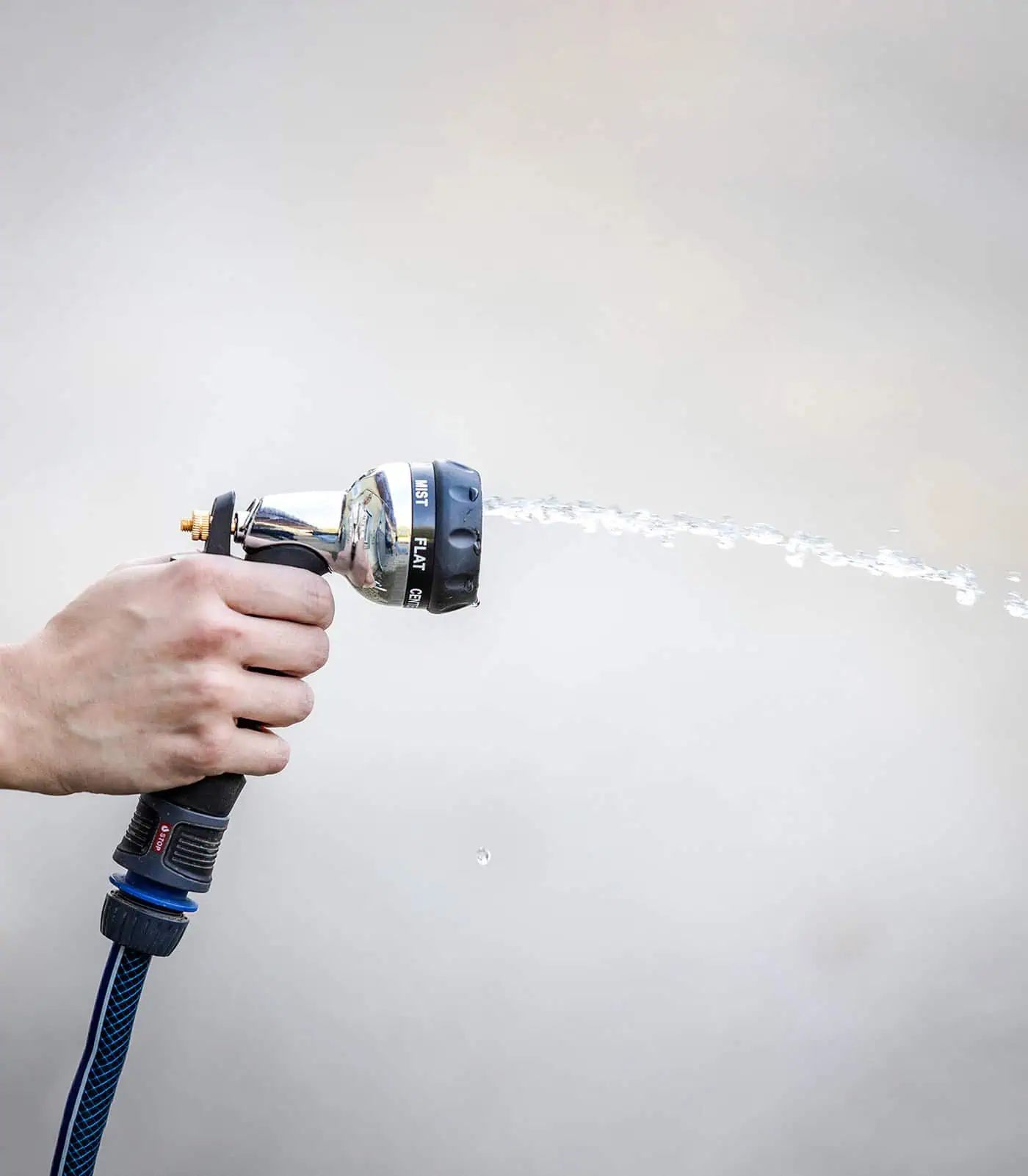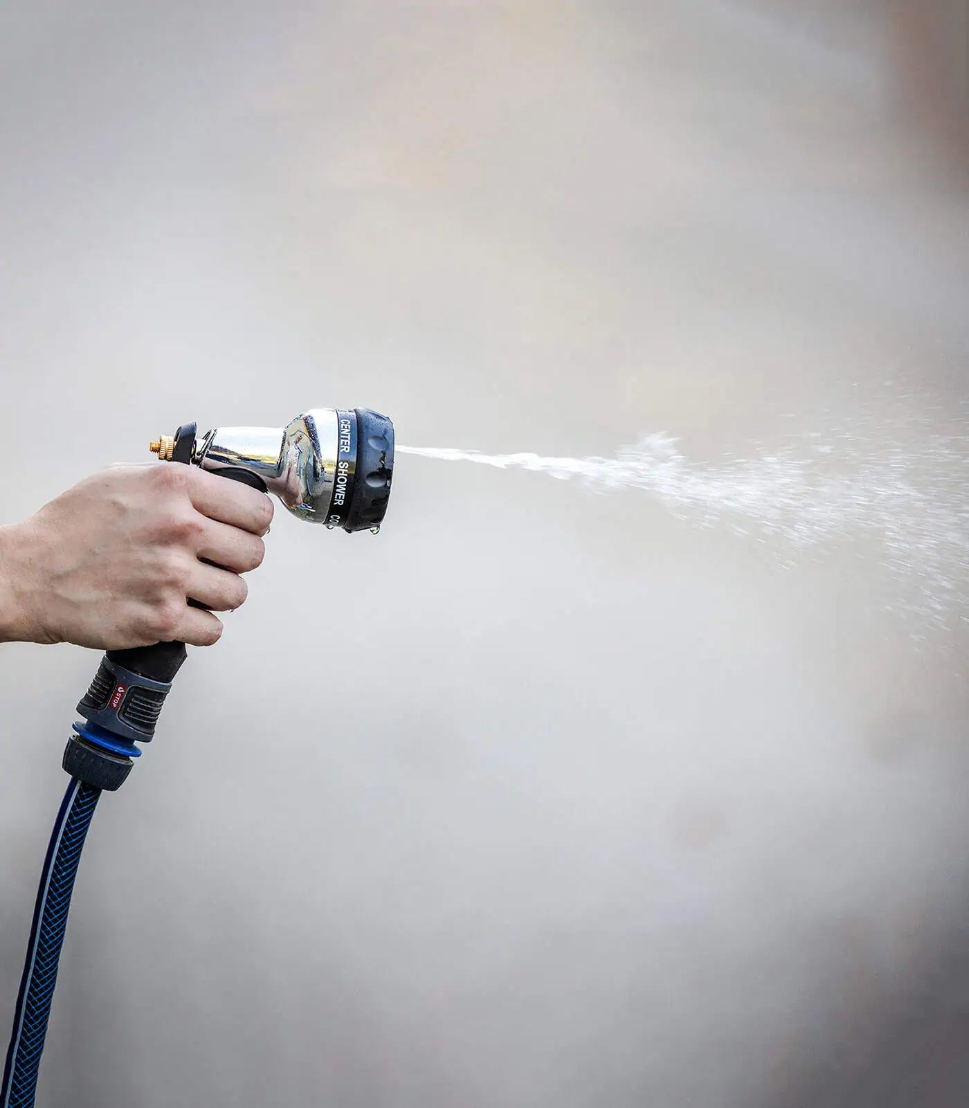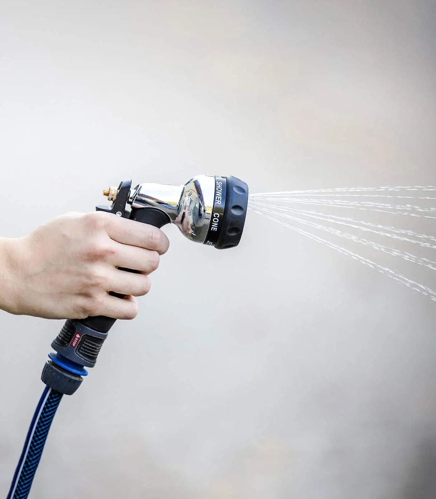 Douche robuste en plastique de qualité supérieure. Avec 7 profils d’aspersion et son jet large à étroit, fort à délicat, cette douche multifonctions en laiton est l’idéal pour toutes les utilisations à l’écurie et en déplacement. Réglage continu de la puissance du jet et gâchette de blocage pour une pulvérisation de longue durée. Facile à utiliser d’une main.