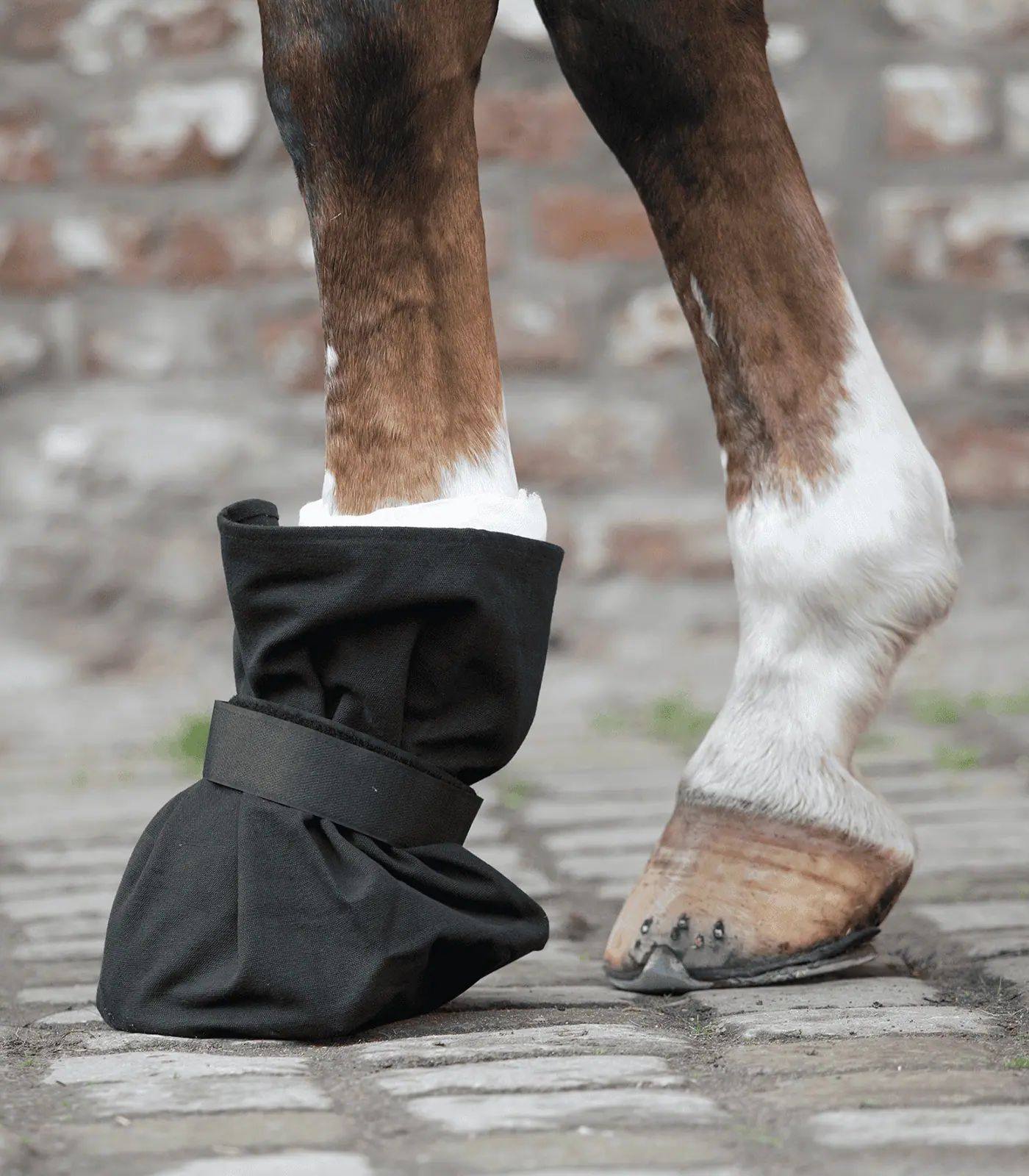 Toile résistante et semelle en PVC pour protéger les pansements du sabot. Fermeture aisée à l’aide d’une bande autoagrippante. Lavable.