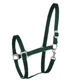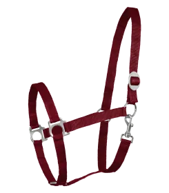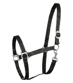Licol sobre et doux pourvu de boucles brillantes et d’une têtière réglable en continu.