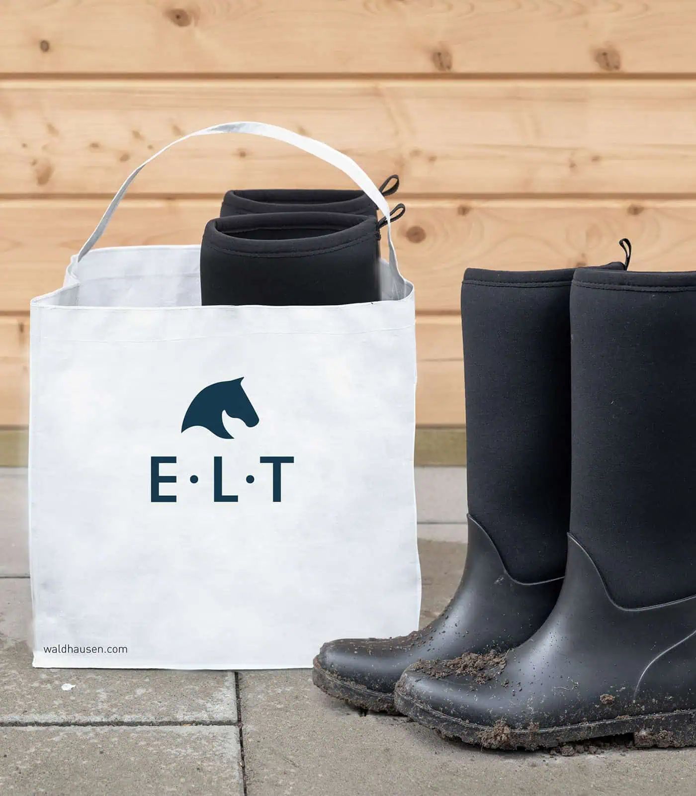 Idéal pour ranger les chaussures d’écurie sales. La poignée plastifiée placée au centre permet de le transporter confortablement. Logo WALDHAUSEN / ELT imprimé à l’avant et à l’arrière.