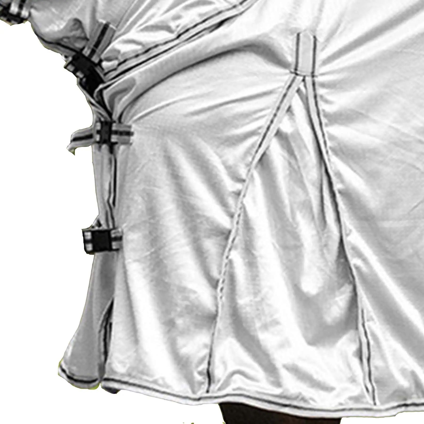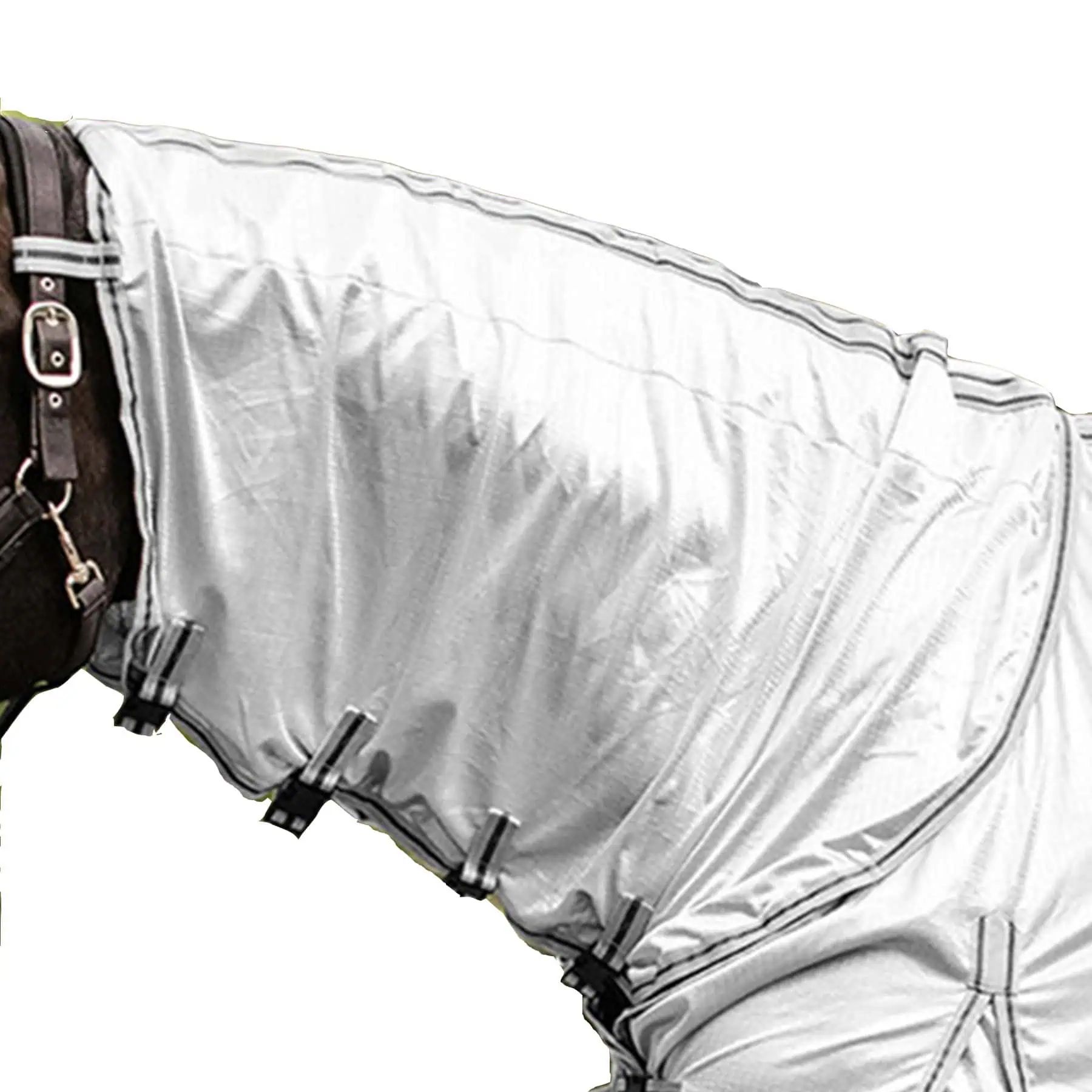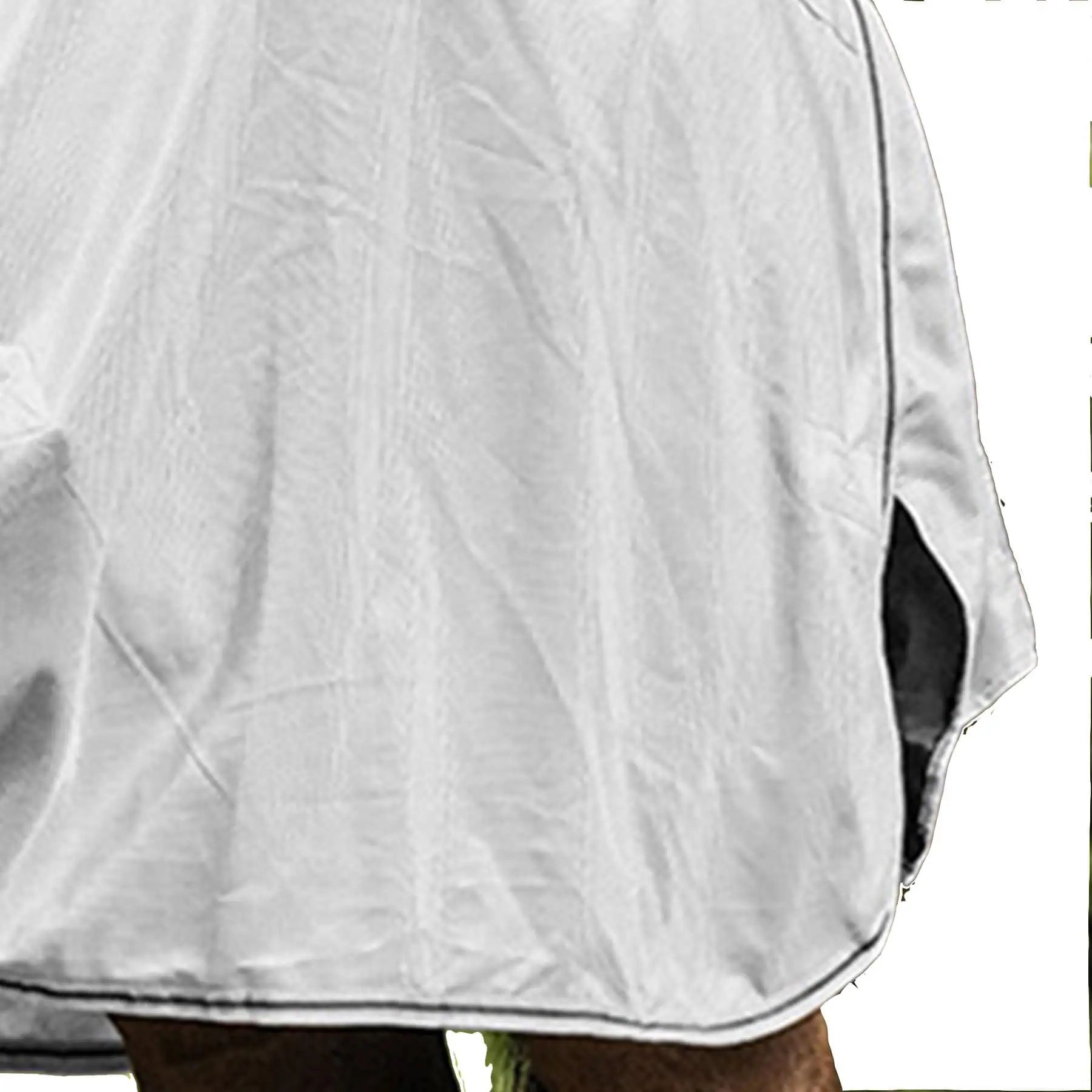 Der Sitz des schwarzen elastischen Bereichs wird oft auf anderen Plattformen bemängelt. Aber, wenn das Pferd den Kopf zum Grasen unten hat ... sitzt der elastische Bereich genau richtig! Das Material ist angenehm glatt und die Nähte sind gut verarbeitet. Die Decke ist stabil aber trotzdem leicht.
