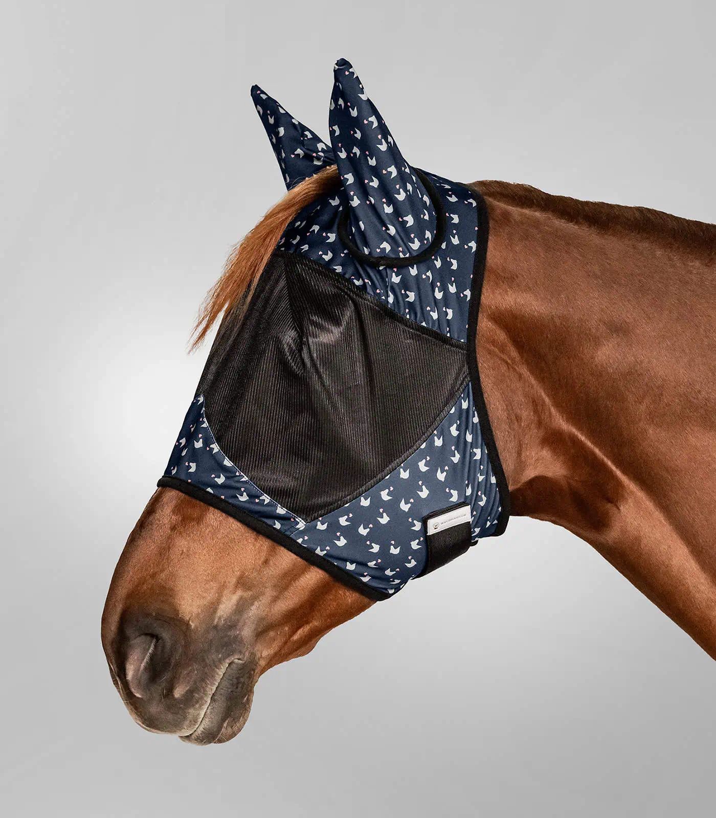 Protection idéale contre les insectes désagréables. Coupe optimale grâce aux élastiques et à la fermeture à scratch. Adorable imprimé sur toute la surface et rembourrage moelleux au niveau du dessus de muserolle.