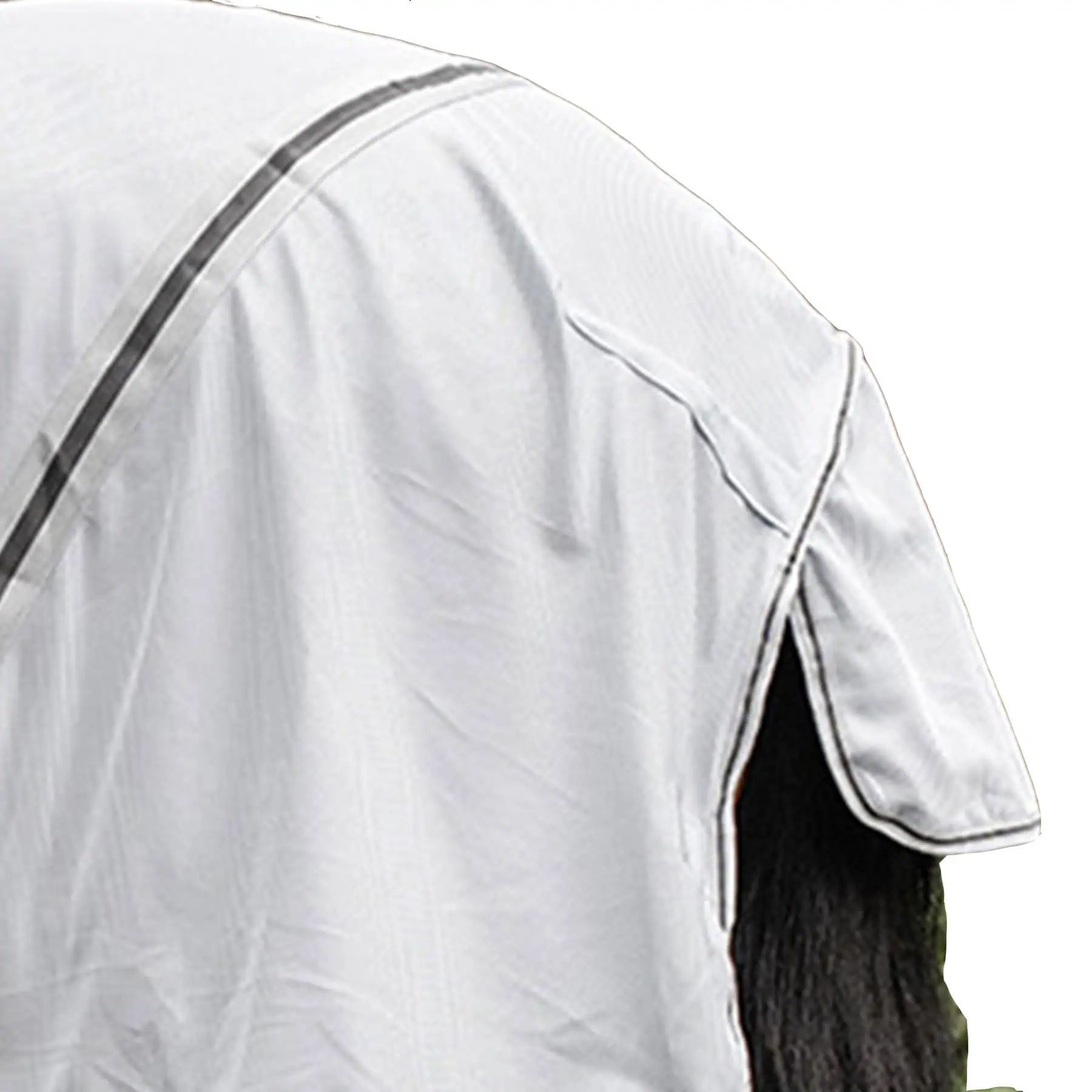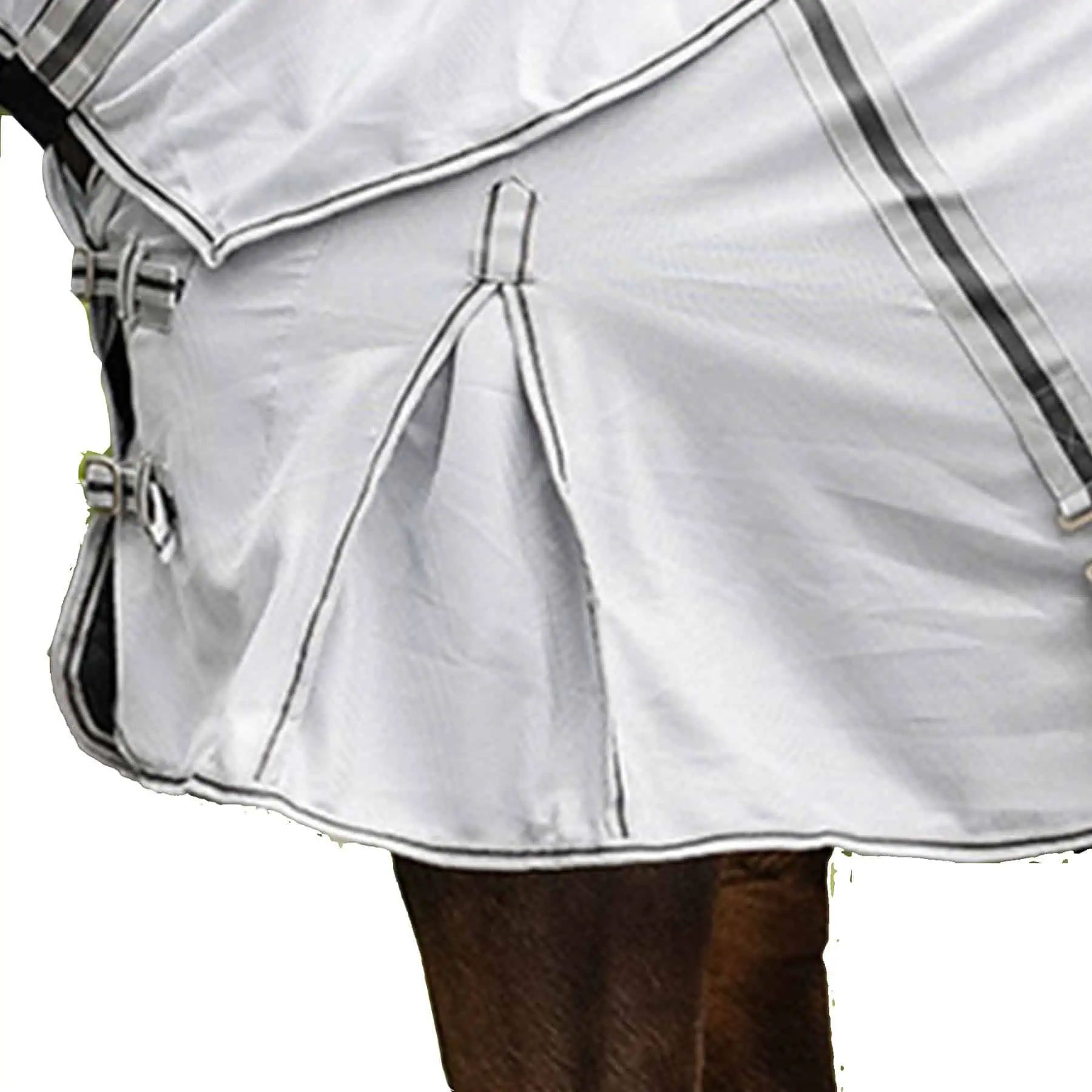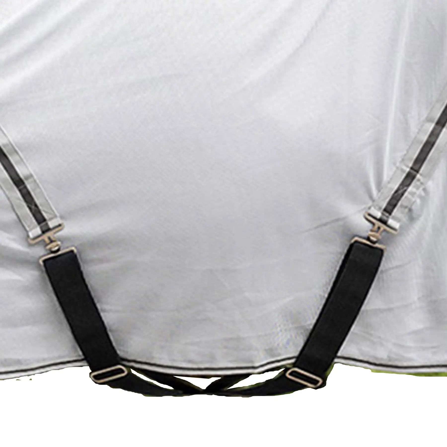 Couverture anti-mouches d’excellente qualité en tissu mailles serrées équipée d’une sangle croisée et d’un rabat de queue pour une meilleure protection contre les insectes gênants. Double fermeture au poitrail, soufflet d’aisance, courroie de jambes et de queue permettent un ajustement optimal. Livrée avec une encolure amovible pour la protection du cou et de la crinière.