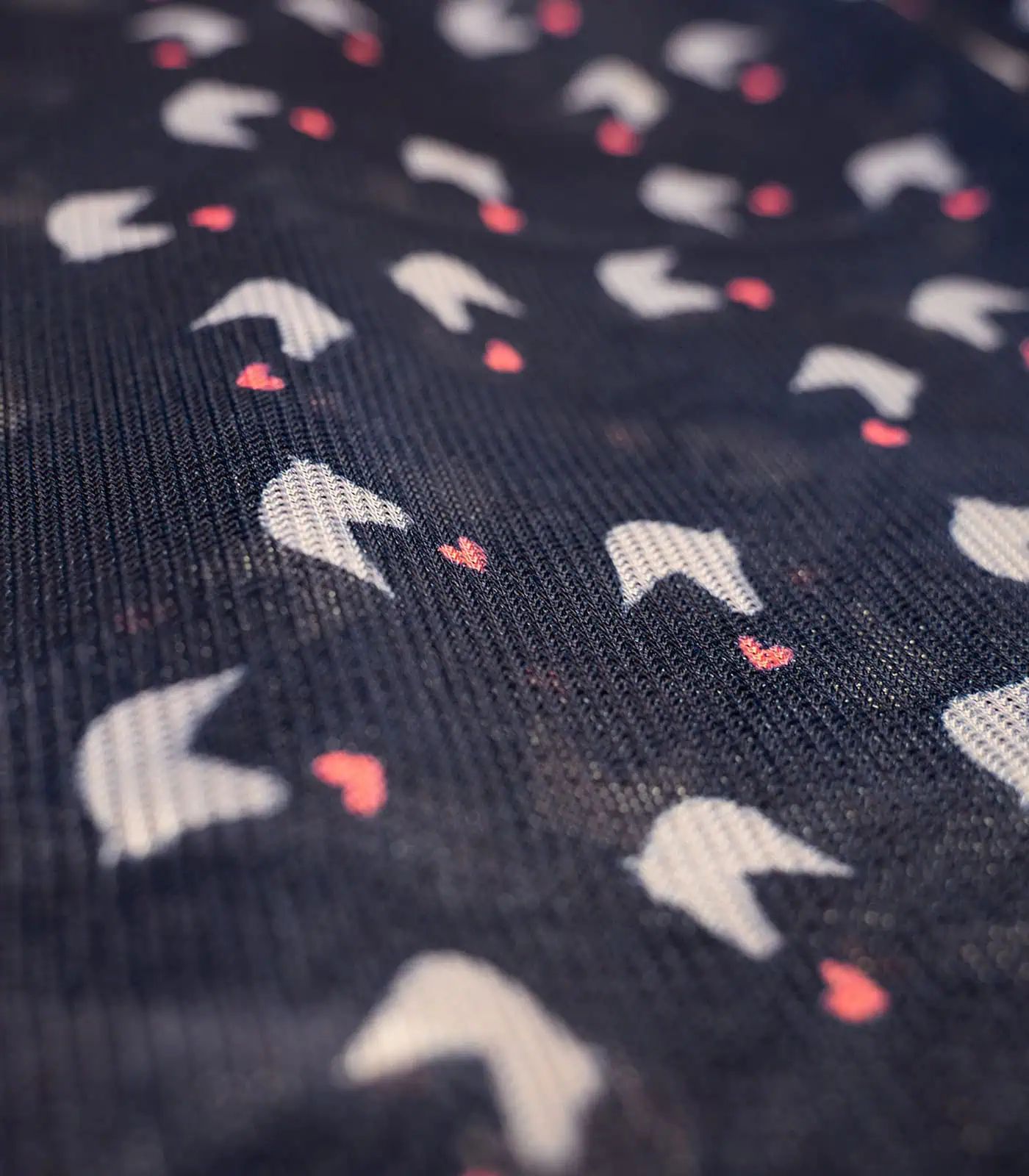 Couverture anti-mouche légère avec un adorable imprimé sur toute sa surface. Fermeture frontale double, sangles croisées à élastiques et courroie de queue.