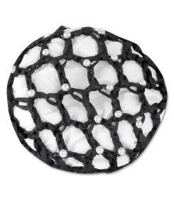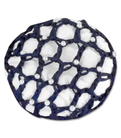 Résille élégant pour cheveux avec nœud embelli par des perles synthétiques.