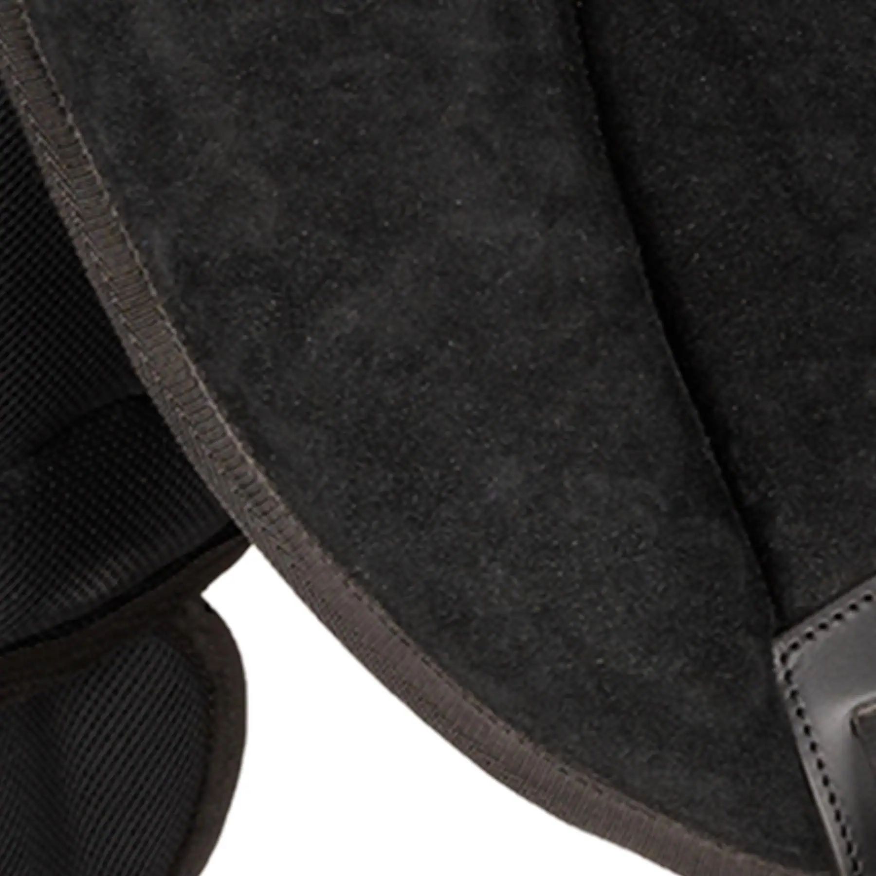 Pad de monte à cru anatomique offrant un très bon maintien grâce à sa surface en daim et à sa poignée en cuir. Le rembourrage épais en mousse résiste à la pression et absorbe les chocs tout en offrant un effet antidérapant. Grâce à son rembourrage moelleux et à la liberté de mouvement qu’il offre au garrot, ce pad de monte procure un grand confort au dos du cheval.
