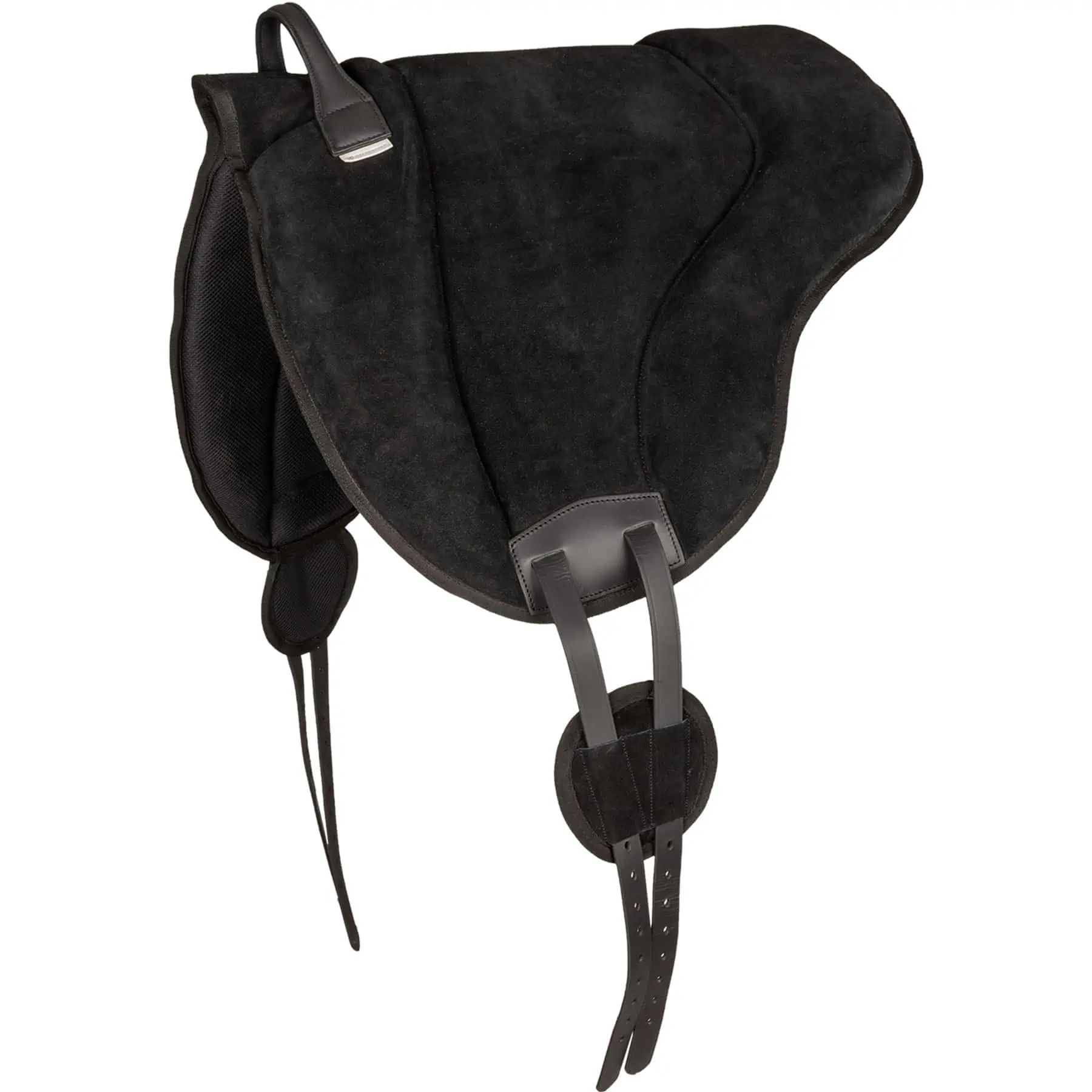 Pad de monte à cru anatomique offrant un très bon maintien grâce à sa surface en daim et à sa poignée en cuir. Le rembourrage épais en mousse résiste à la pression et absorbe les chocs tout en offrant un effet antidérapant. Grâce à son rembourrage moelleux et à la liberté de mouvement qu’il offre au garrot, ce pad de monte procure un grand confort au dos du cheval.