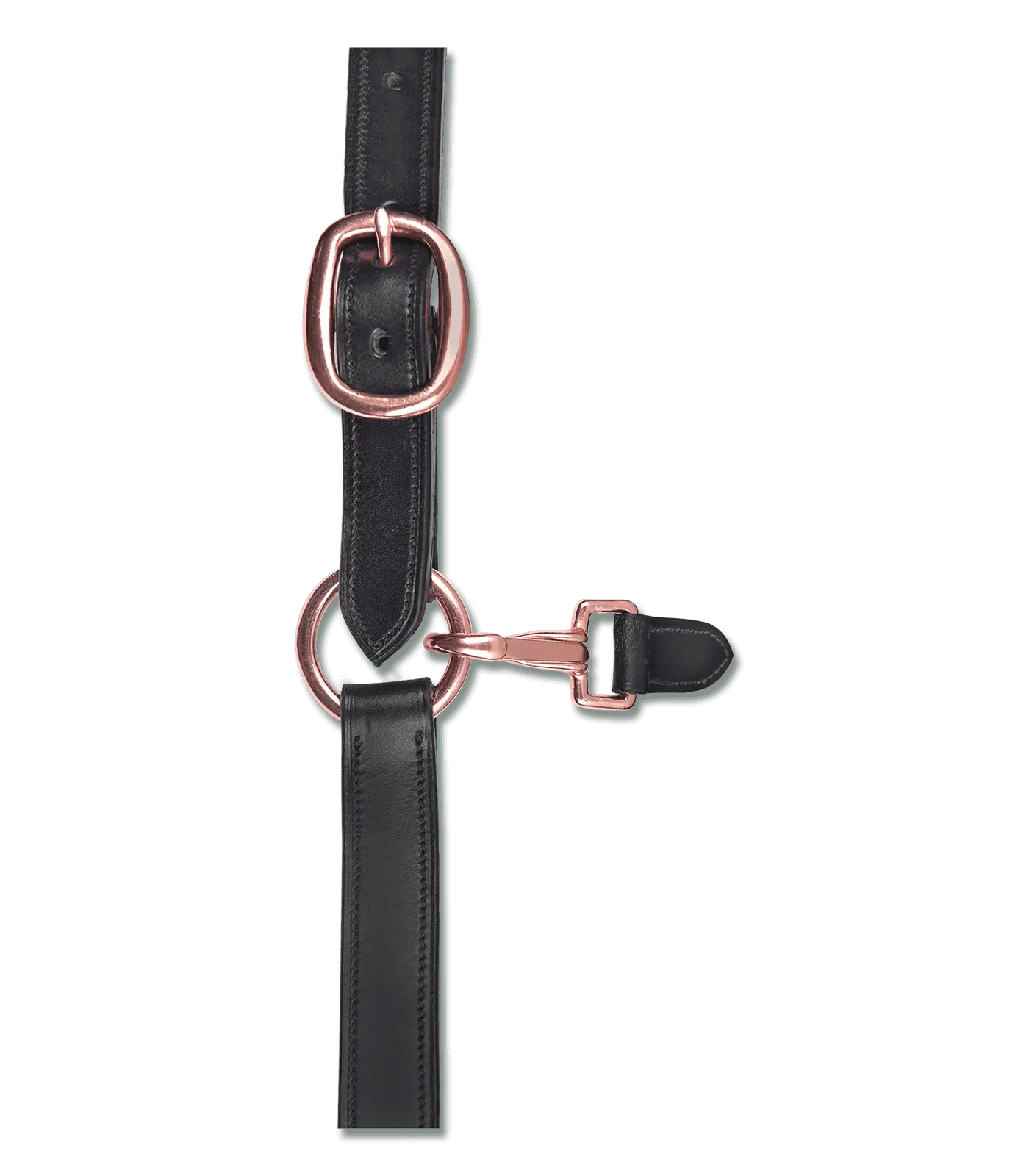 Élégant licol en cuir, avec muserolle et la têtière rembourrées. Sous-gorge cousue rond. Bouclerie d’excellente qualité. Têtière réglable de chaque côté. Muserolle à réglage simple.