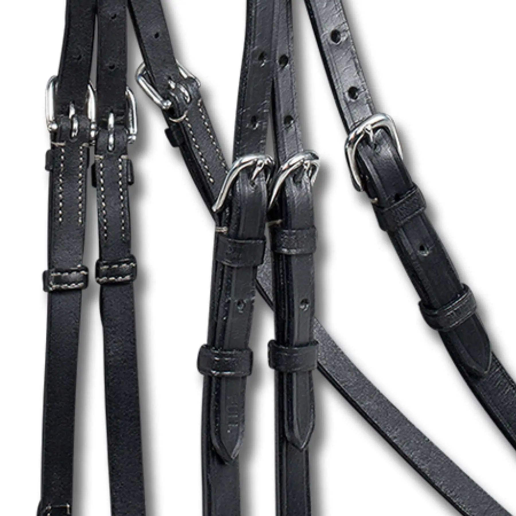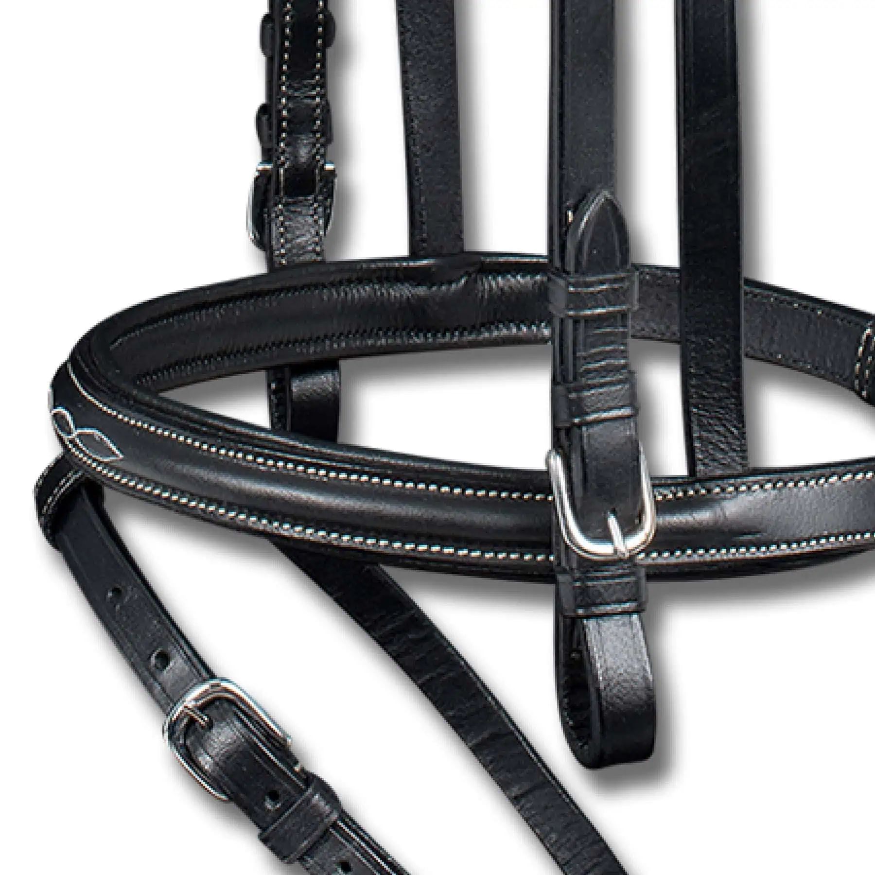- Dessus de muserolle, frontal et têtière pourvus d’une doublure moelleuse