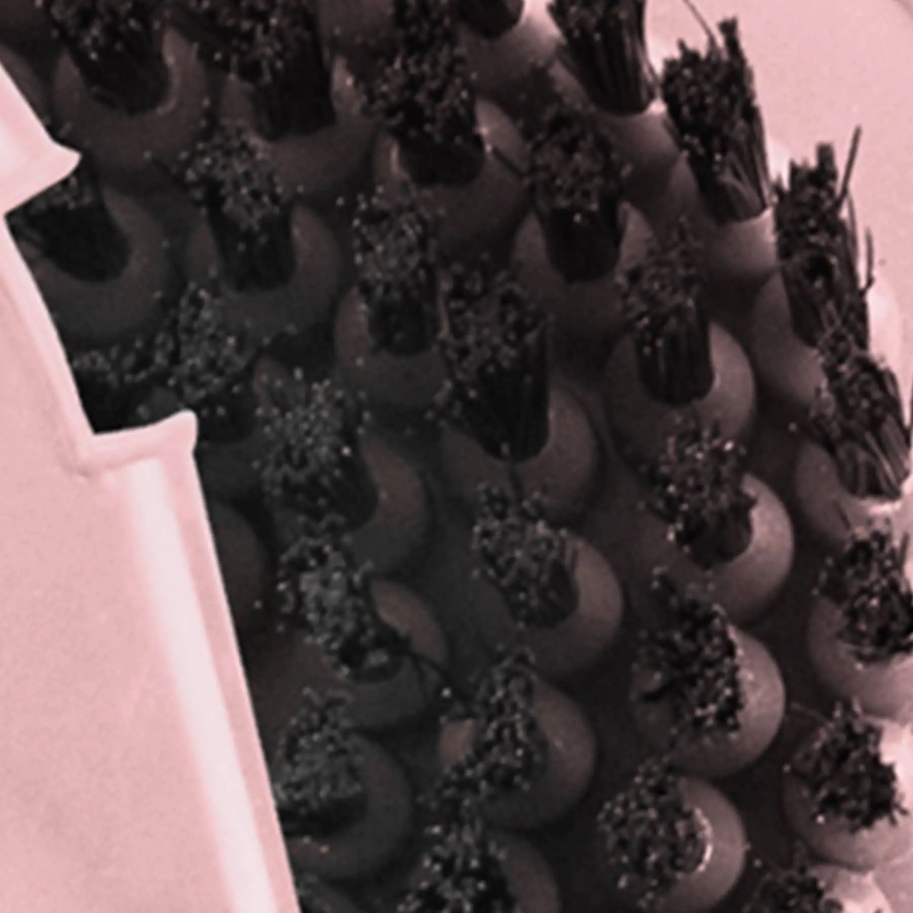 Un côté à picots, un autre côté à poils synthétiques.