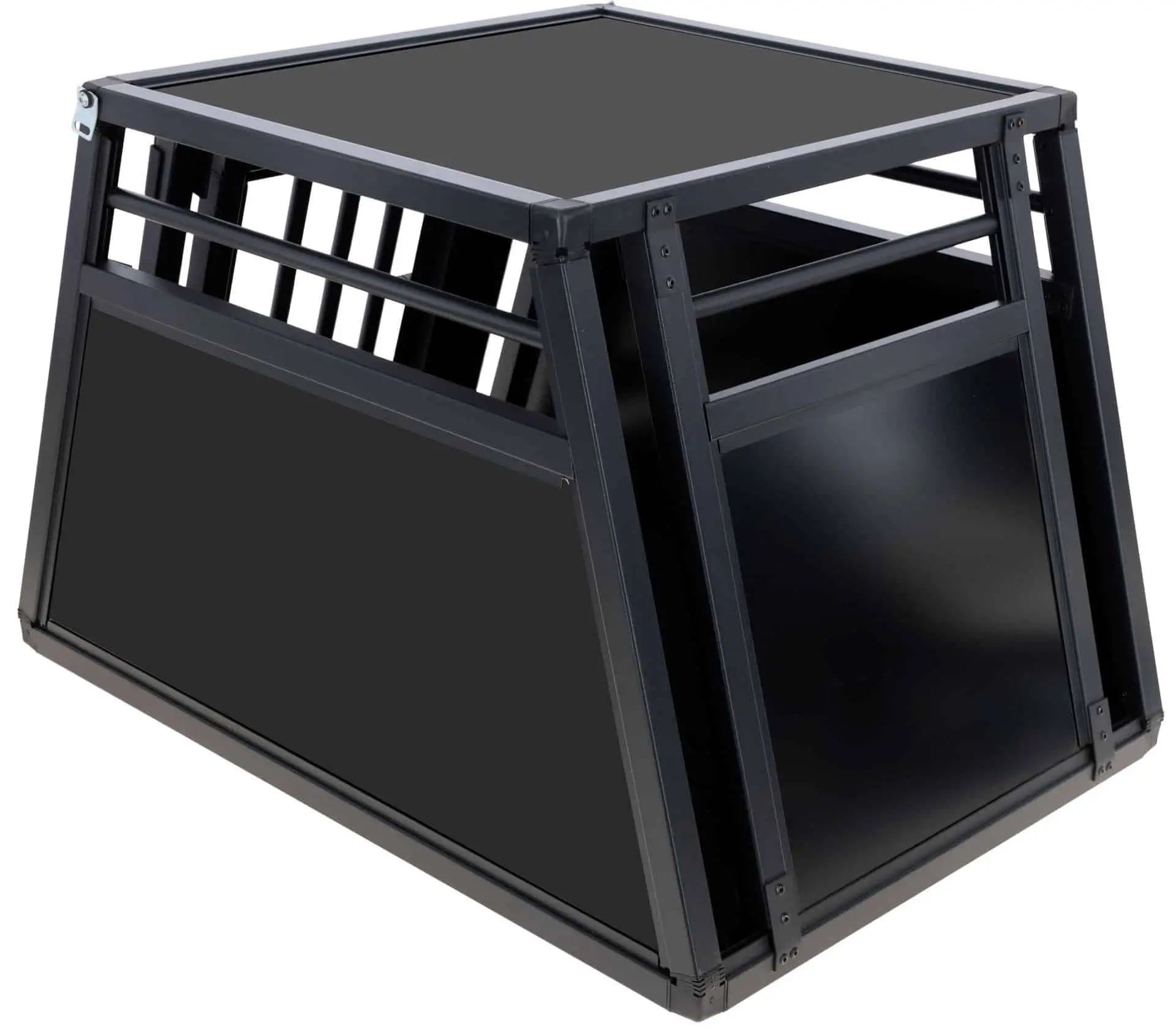 La caisse de transport en aluminium Vacation offre une solution stable et sûre pour transporter votre compagnon à quatre pattes en voiture. Conçue spécialement pour le coffre, elle garantit un transport sécurisé et facile de votre animal. Fabriquée à partir de parois et d'un toit en matériau composite aluminium-plastique de haute qualité, elle assure non seulement une grande robustesse, mais aussi un poids réduit. Grâce à ses faces avant et arrière inclinées en forme de trapèze, elle s'adapte parfaitement à la forme du coffre de votre voiture.