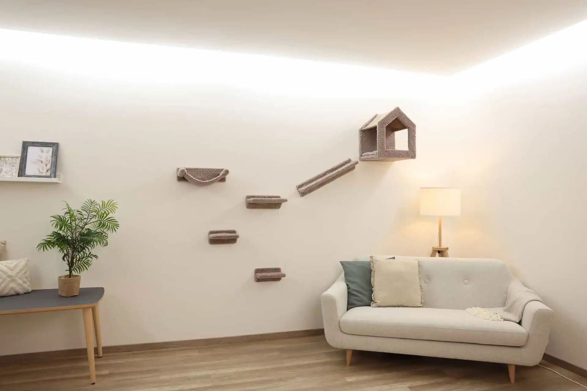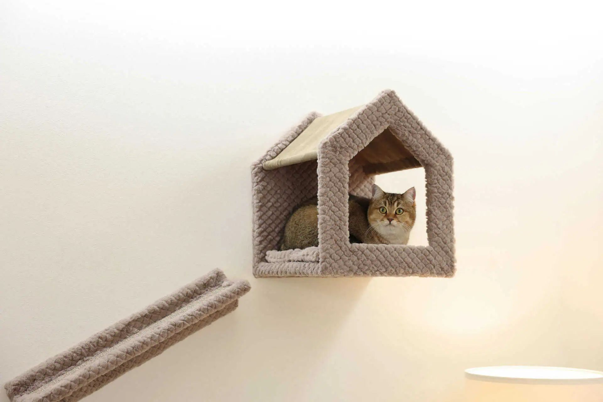 Les autres éléments du mur d'escalade sont recouverts de soft pluche doux en 100 % polyester, offrant un confort supplémentaire. Grâce à son design compact, il est particulièrement adapté aux propriétaires de chats vivant dans des espaces restreints. L'installation est facile grâce à la notice de montage incluse et aux matériaux de fixation fournis.