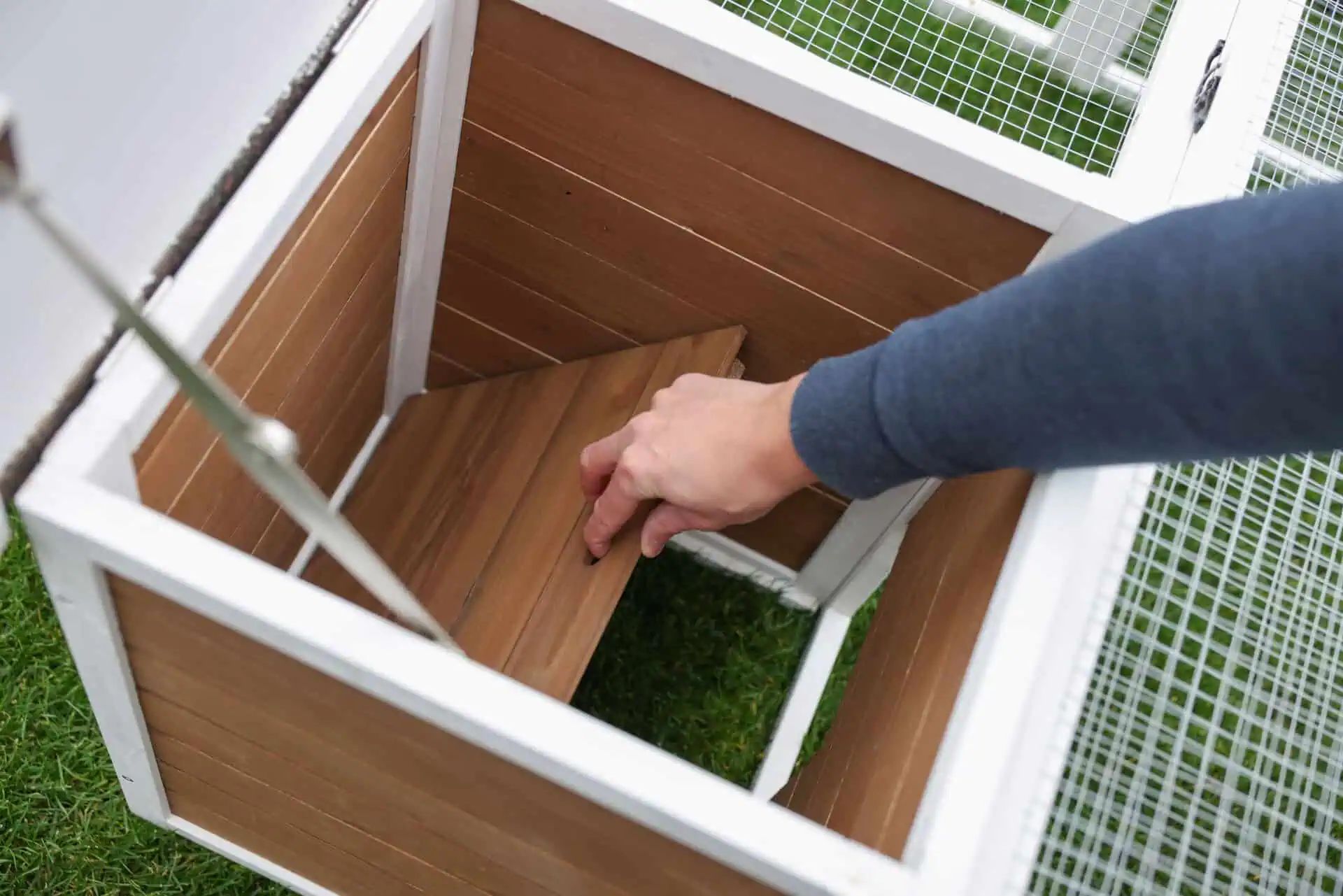 Réponse : Le toit grillagé et le toit de l'abri peuvent être ouverts par le haut, ce qui rend le nettoyage très facile et pratique.