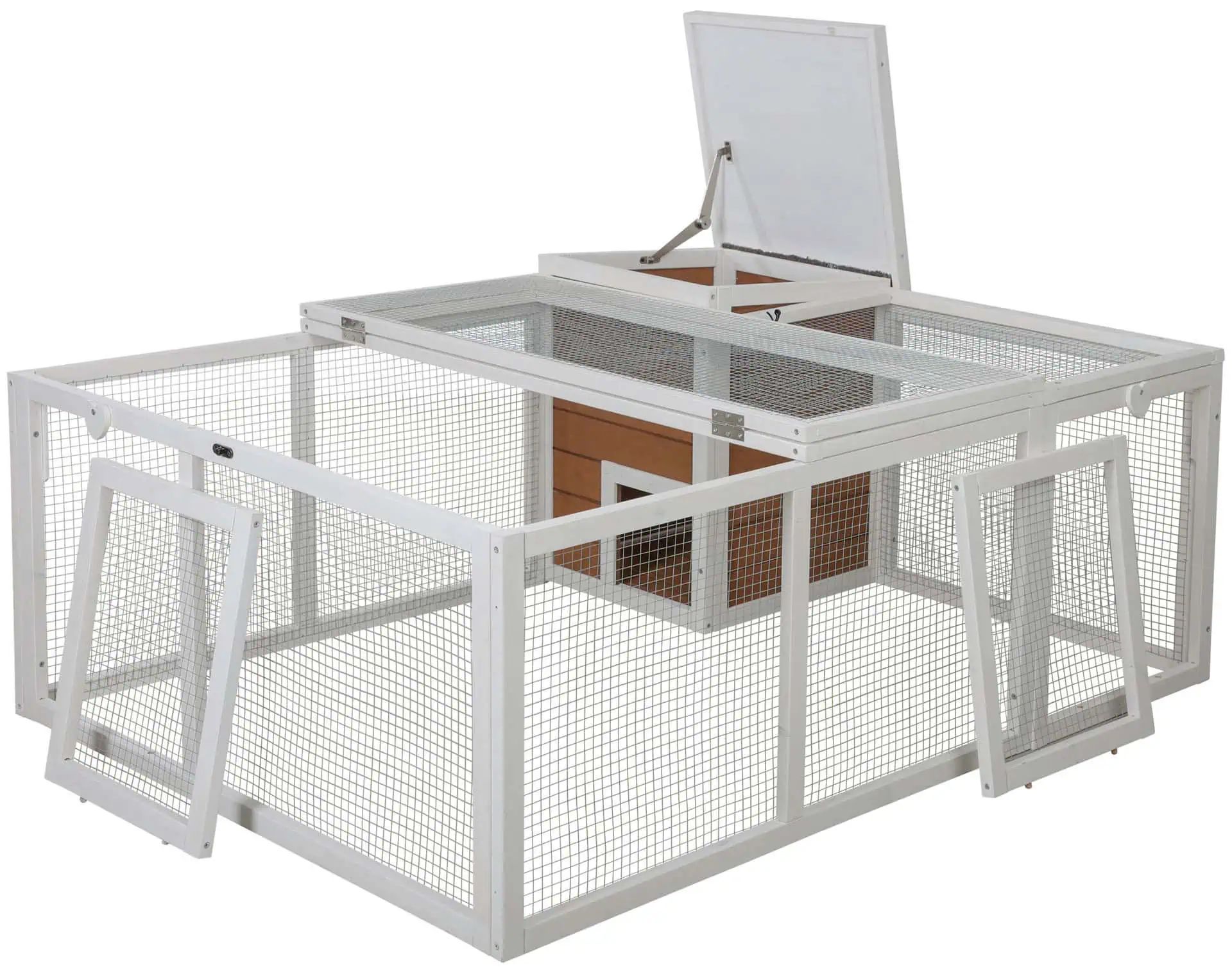 Cet enclos est idéal pour les propriétaires d'animaux qui souhaitent offrir à leurs compagnons une grande liberté de mouvement sans compromettre la sécurité et le confort. Il convient particulièrement aux lapins et autres petits animaux qui ont besoin de se déplacer tout en ayant un endroit protégé où se retirer. Fabriqué en bois de haute qualité, connu pour sa durabilité et sa résistance aux intempéries, cet enclos est conçu pour durer.