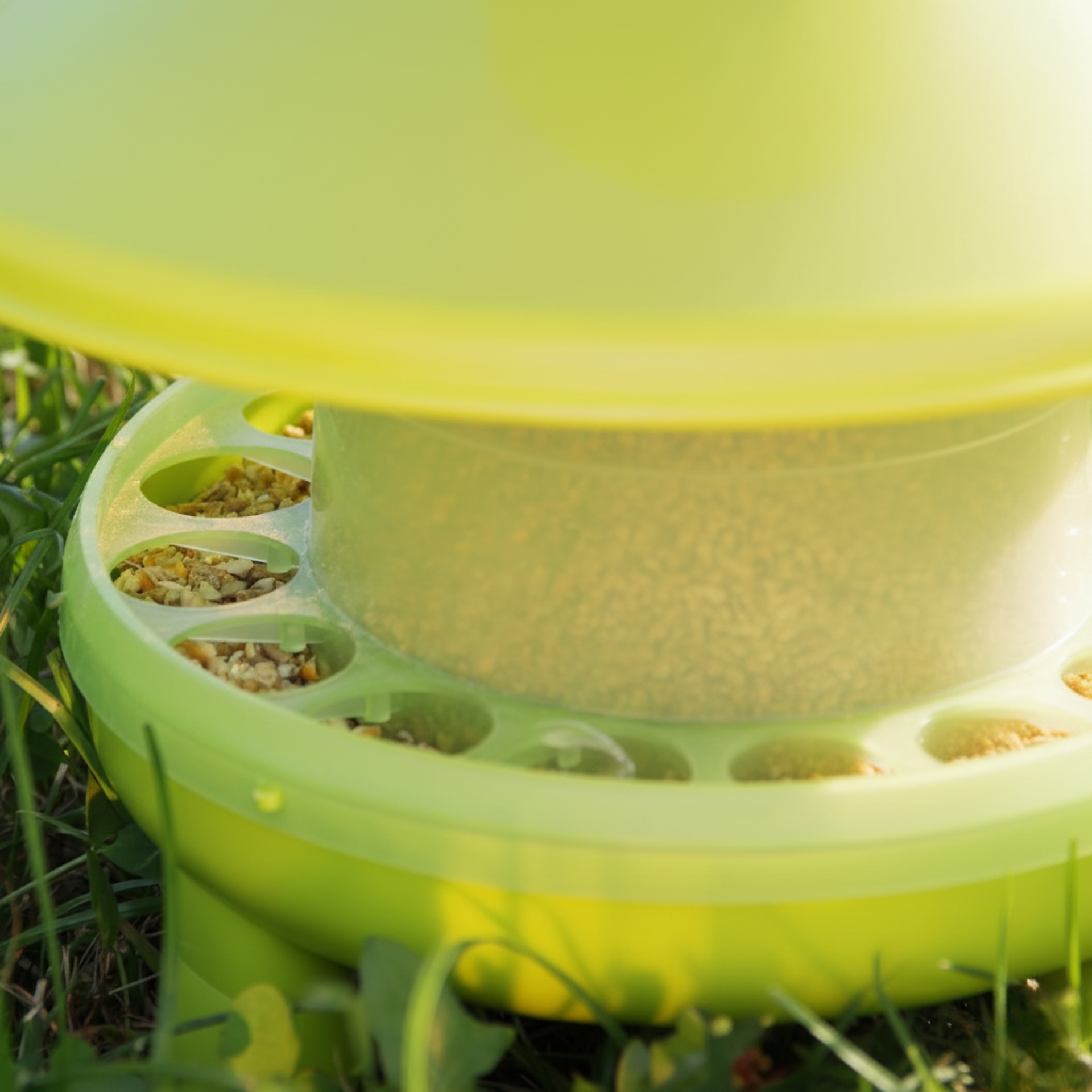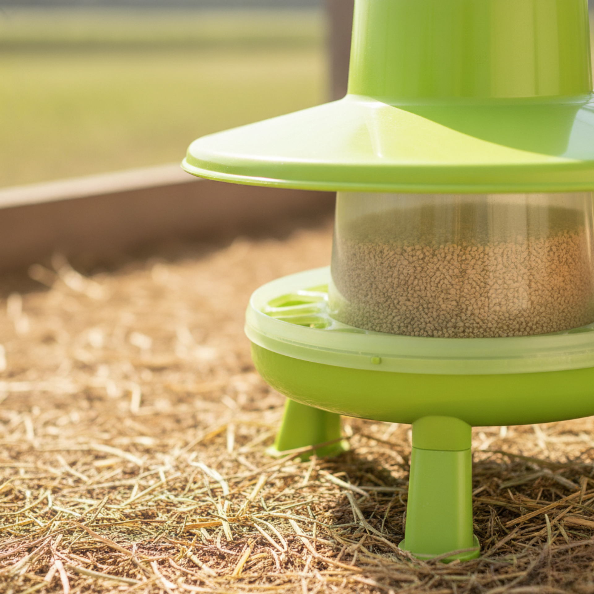 Mangeoire pour poules en plastique 4 kg avec pieds et chapeau de pluie, vert