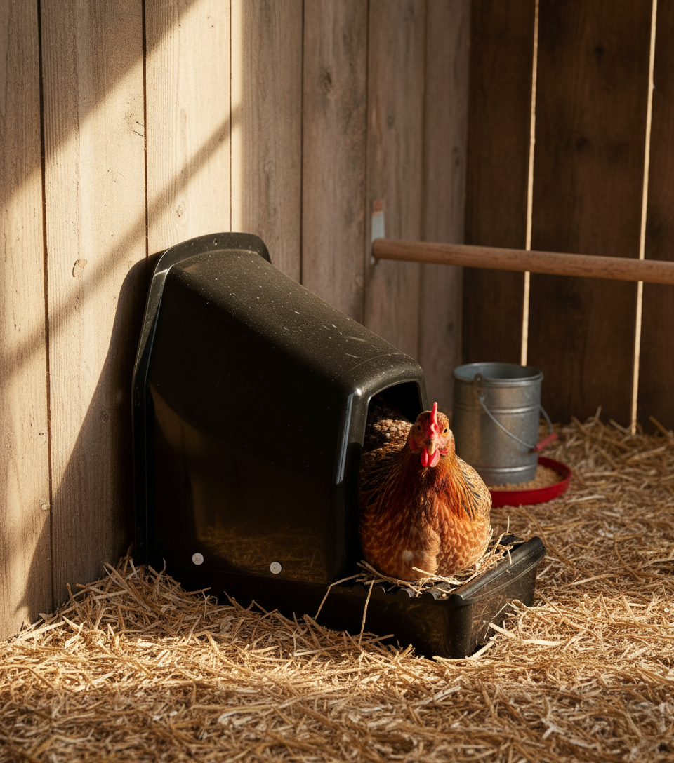 Le nid de ponte peut accueillir jusqu'à 5 poules.
