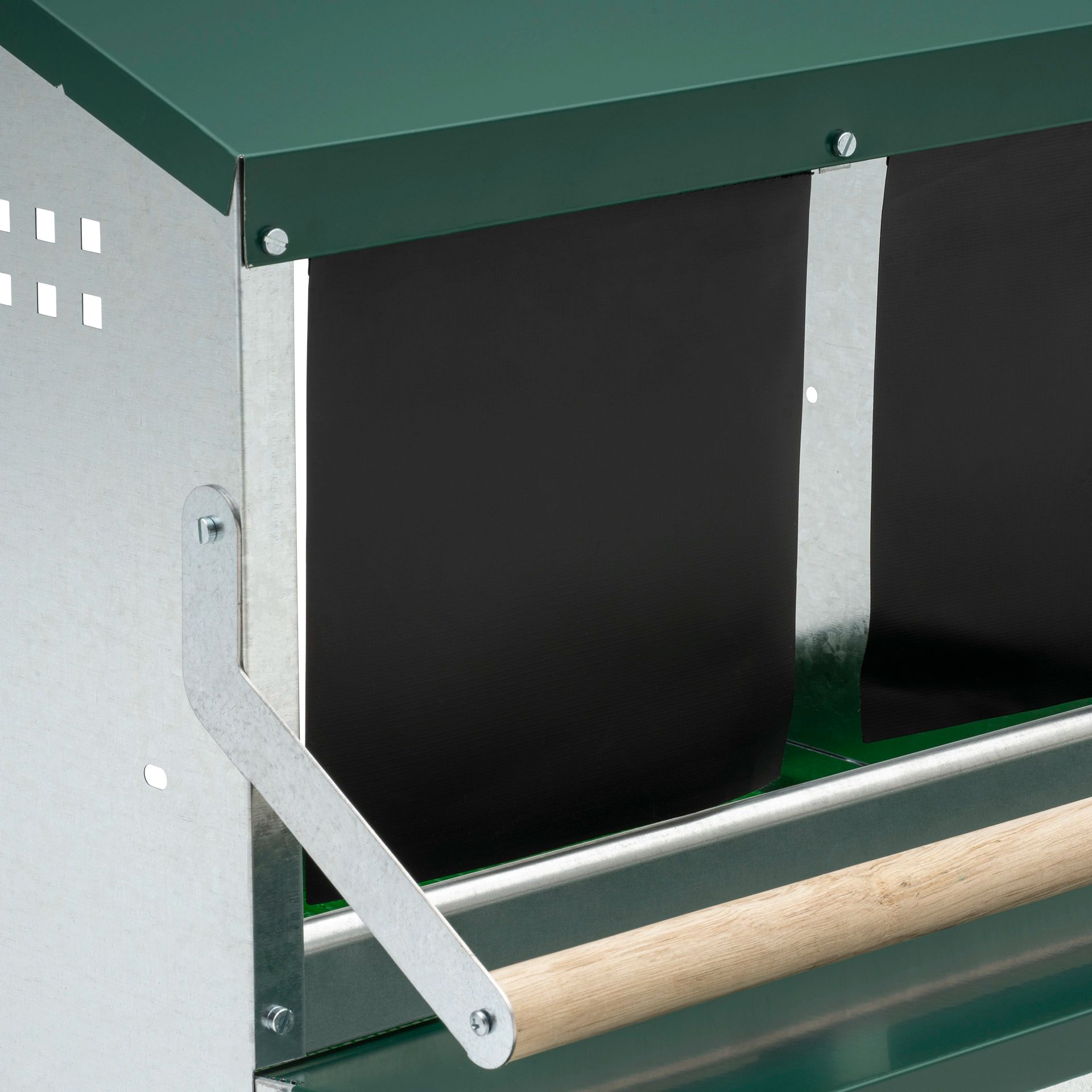 Les points forts incluent la facilité de montage et les matériaux de haute qualité qui garantissent une longue durée de vie. Ce pondoir est parfait pour les éleveurs de poules souhaitant offrir confort et sécurité à leurs volailles. Fabriqué en plastique robuste et en métal, il répond à toutes les exigences de l'élevage moderne des poules.